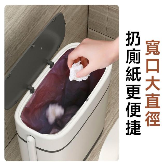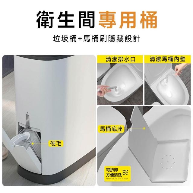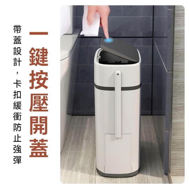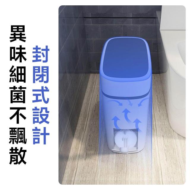 赫朗 夾縫垃圾桶 窄縫垃圾桶 馬桶旁垃圾桶 一鍵開蓋 寬大開口 衛生間專用(14L/側帶馬桶刷/磁吸固定)