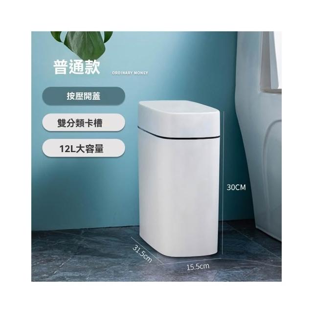 赫朗 夾縫垃圾桶 窄縫垃圾桶 馬桶旁垃圾桶 一鍵開蓋 寬大開口 衛生間專用(14L/側帶馬桶刷/磁吸固定)