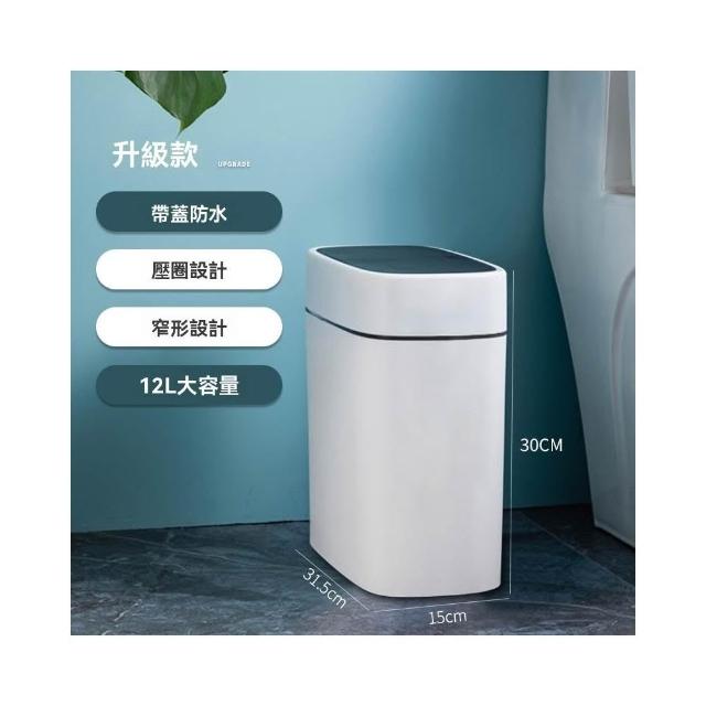 赫朗 夾縫垃圾桶 窄縫垃圾桶 馬桶旁垃圾桶 一鍵開蓋 寬大開口 衛生間專用(14L/側帶馬桶刷/磁吸固定)