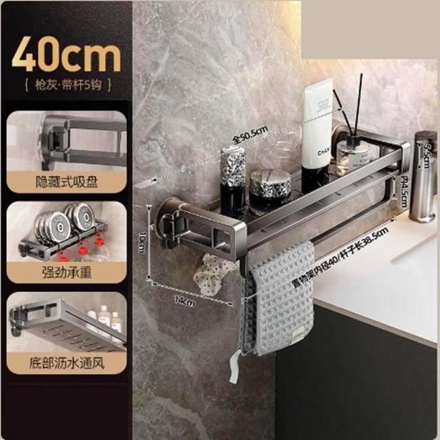 赫朗 洗手台吸盤壁掛架 浴室收納架 置物架 壁掛架 毛巾架 浴巾架 洗漱台收納(隱藏式吸盤/拆卸無痕/帶毛巾桿掛鉤)
