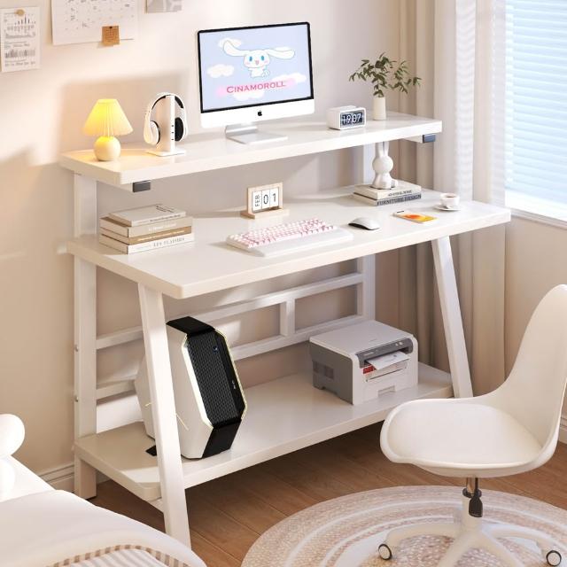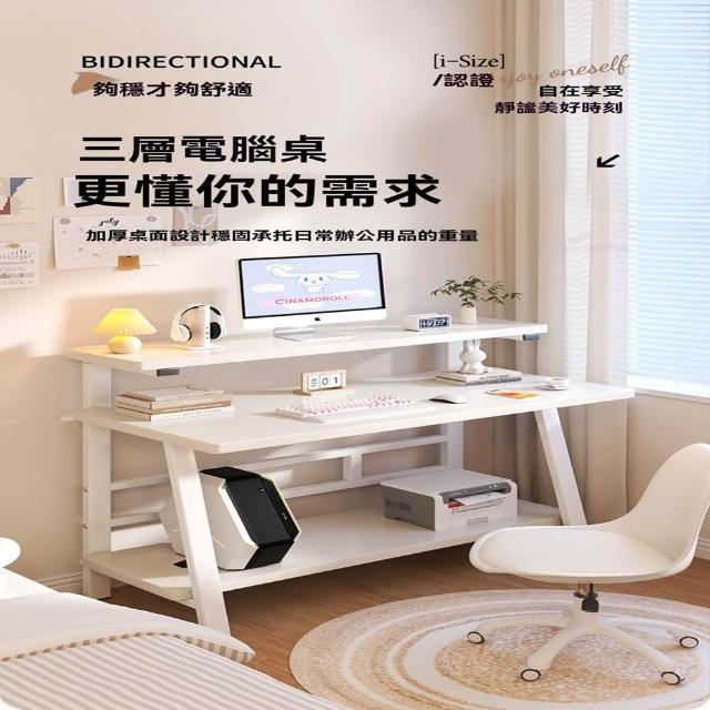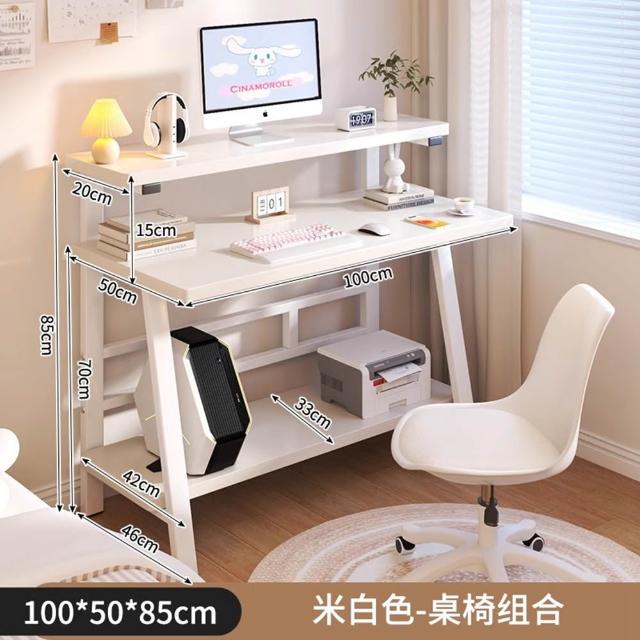 赫朗 電腦桌 小型辦公桌 簡易書桌 寫字桌 工作桌 書桌 學習桌 桌子 三層電腦桌(升級主機架位/雙層置物/桌椅組合一套/自帶增高器)