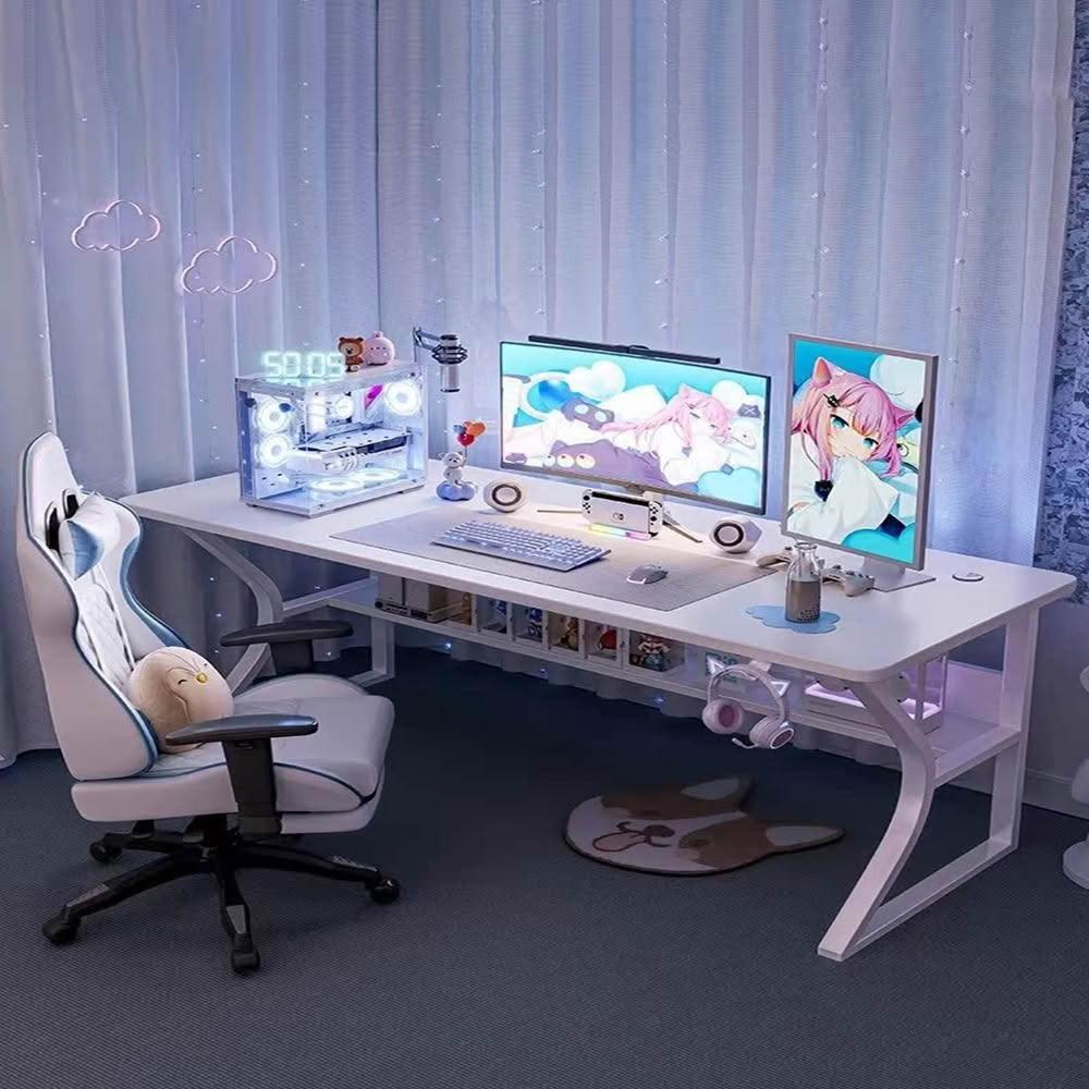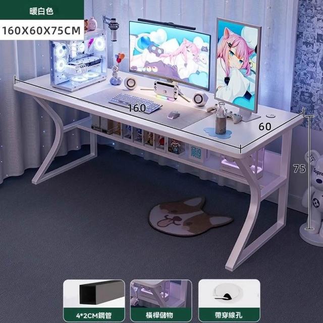 赫朗 白色電競桌子 電腦桌 家用辦公桌 臥室書桌 學習寫字桌 學習桌 工作桌 桌子 電腦桌(升級帶桌下層架/結實鋼架)