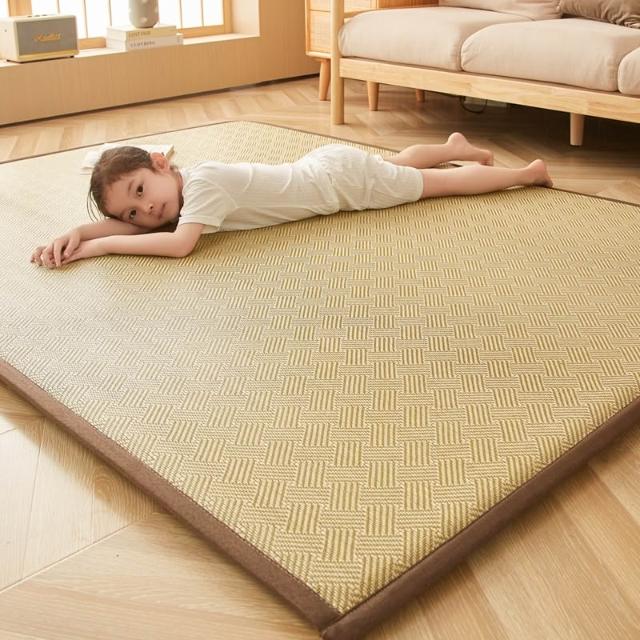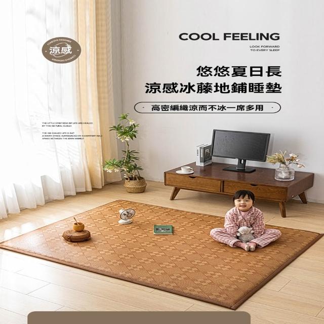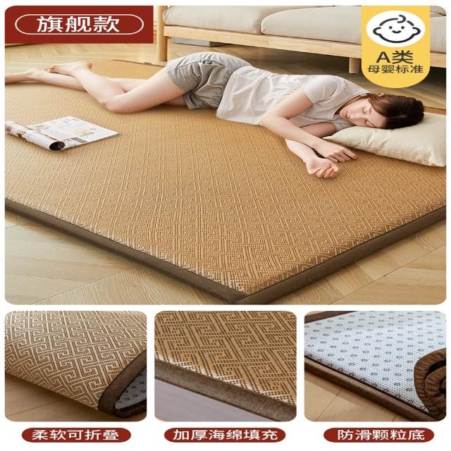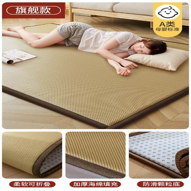 赫朗 藤席榻榻米涼席 涼感地墊 床墊 榻榻米地墊 涼蓆床墊 清涼透氣 柔軟回彈(冰藤面料/2cm加厚海綿填充/可折疊收納)