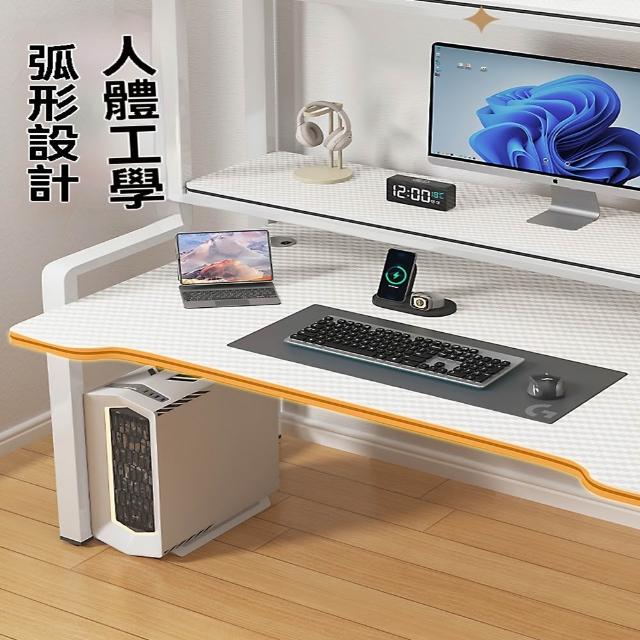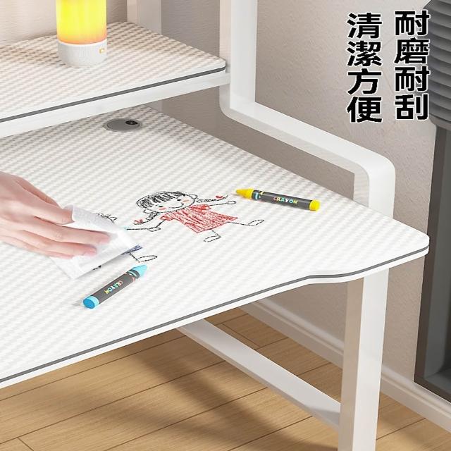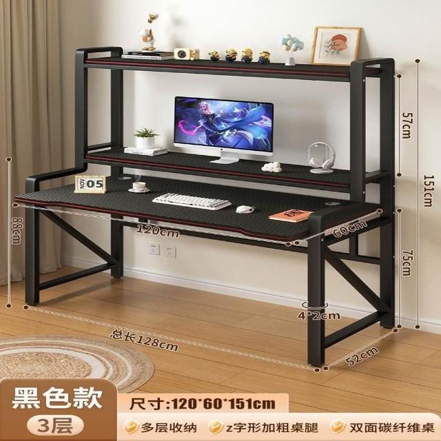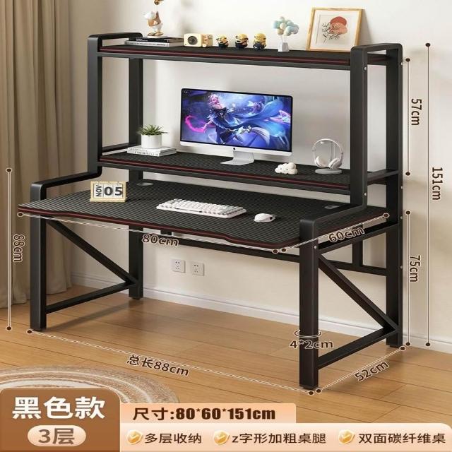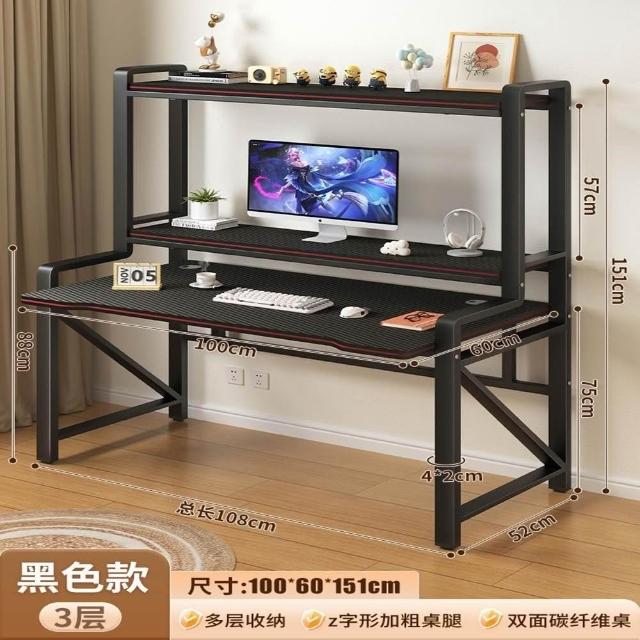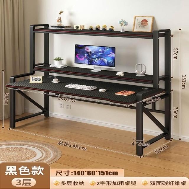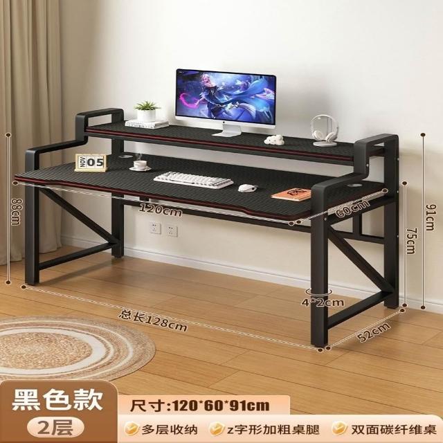 赫朗 電腦桌 台式書桌 家用遊戲電競桌 臥室簡易辦公桌 書桌 辦公桌(雙層置物升級Z型加粗桌腿/雙面碳纖維桌面)