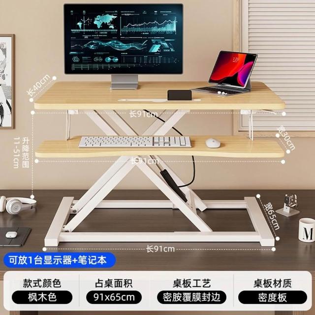 赫朗 站立式電腦辦公桌 可升降工作台 升降桌 增高架 升降電腦桌 辦公桌(無極升降自由懸停/14-51cm升降高度)
