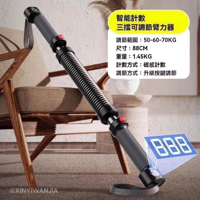 赫朗 臂力器 可調節彈簧 健身棒 可調節力度臂力棒 握力棒 胸肌訓練器(凸點防滑/磁感數顯計數/20-70kg可調)