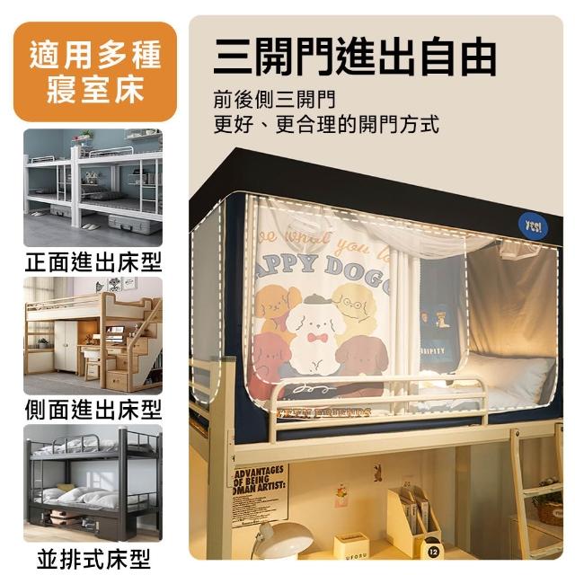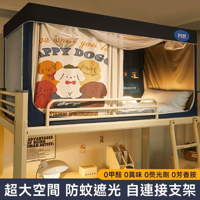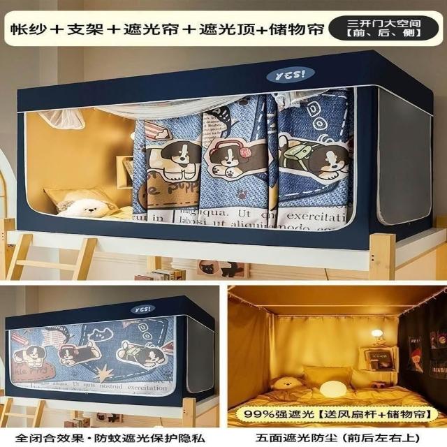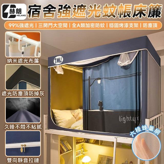 赫朗 宿舍專用床簾 一體式蚊帳 宿舍床簾 蚊帳 上下鋪蚊帳 強遮光 5面全包(2S免安裝支架/三開門/長寬高自由伸縮)