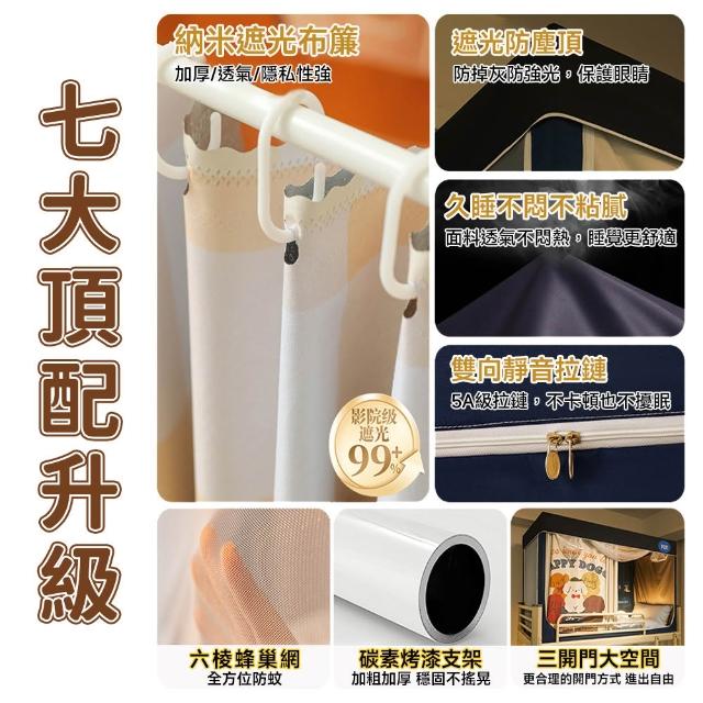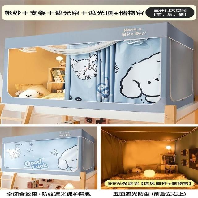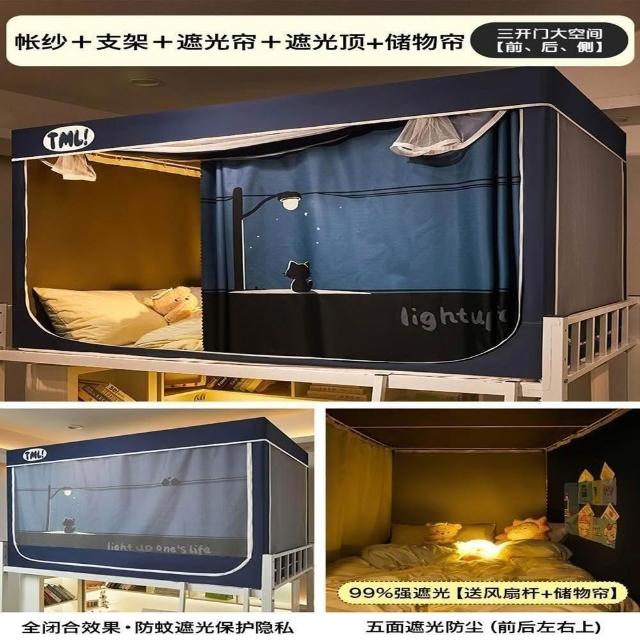 赫朗 宿舍專用床簾 一體式蚊帳 宿舍床簾 蚊帳 上下鋪蚊帳 強遮光 5面全包(2S免安裝支架/三開門/長寬高自由伸縮)