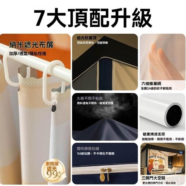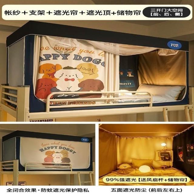赫朗 宿舍專用床簾 一體式蚊帳 宿舍床簾 宿舍蚊帳 上下鋪蚊帳 強遮光蚊帳 5面全包(加厚透氣/免安裝支架/三開門)