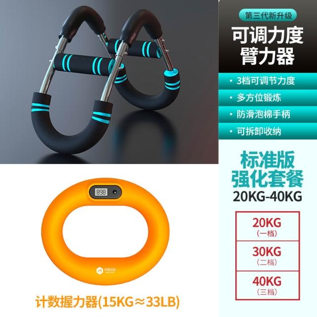 赫朗 雙簧式臂力器 臂力棒 靜音臂力棒 鍛煉胸肌 健臂器 手臂訓練 可調節力度臂力棒 入門式訓練(3檔力度可調/可拆卸收納/多方位鍛煉)