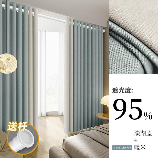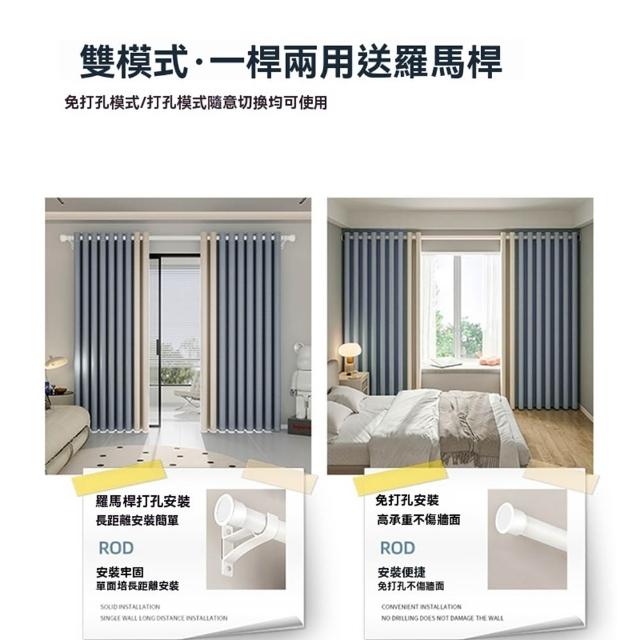 赫朗 免打孔遮光窗簾帶桿 全遮光窗簾 不透光窗簾 遮光窗簾 落地遮光窗簾 5層加厚 羅馬桿 一套兩片 (一桿兩用/高承重支撐/靜音環)