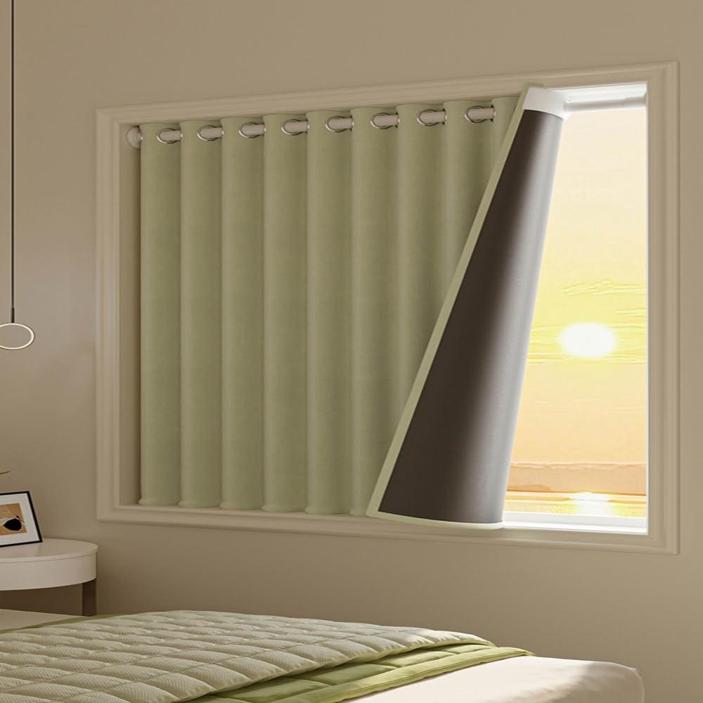 赫朗 遮光絨布短窗簾 短窗簾 窗簾 不透光窗簾 全遮光窗簾 隔音窗簾 黑金覆底 降噪窗簾 遮光隔熱(磁吸綁帶/加厚絨布簾/帶伸縮桿)