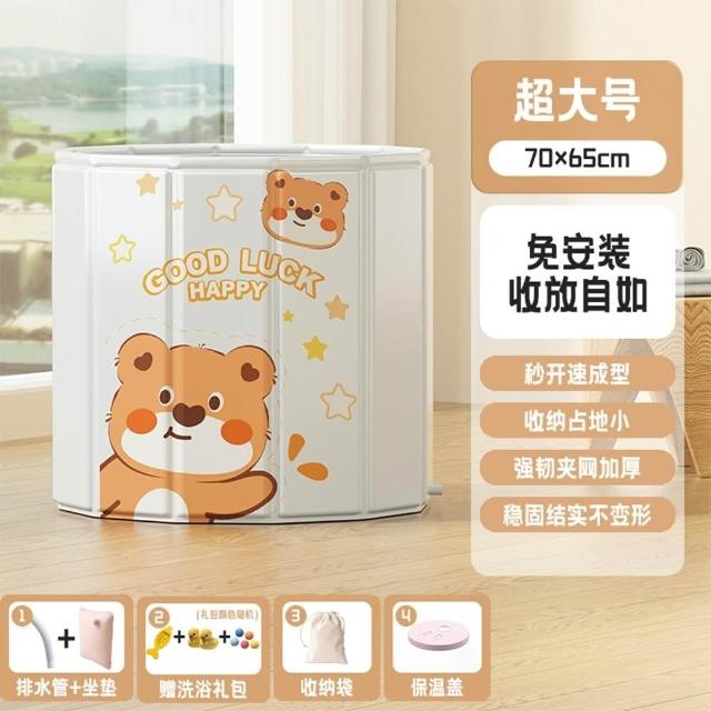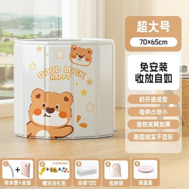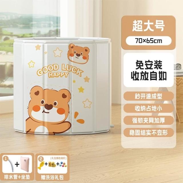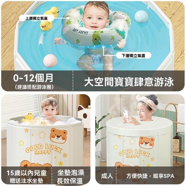 赫朗 多邊形兒童泡澡桶 折疊泡澡桶 折疊浴缸 沐浴桶 側邊排水(一甩即開/180分鐘鎖溫/12邊形支撐)