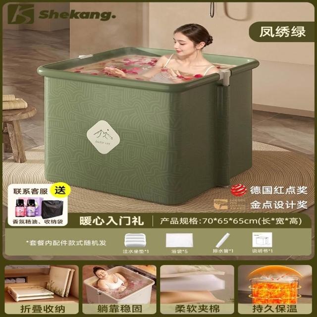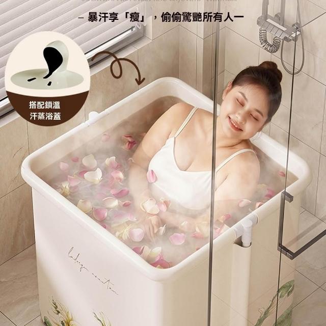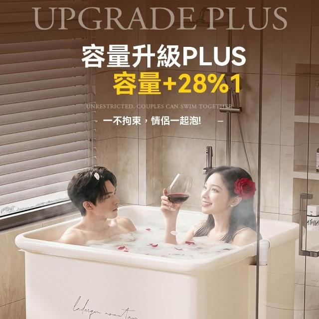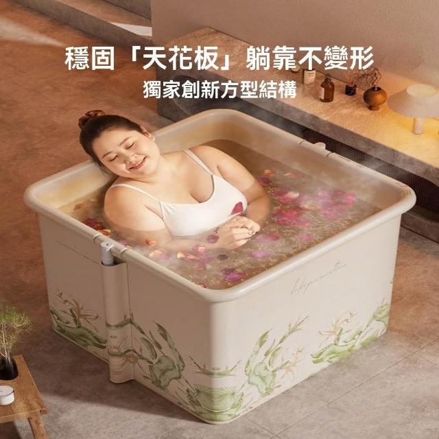 赫朗 方形折疊泡澡桶 沐浴桶 泡澡浴缸 折疊浴缸 速開浴桶 澡盆 躺靠穩定(雙排水口/持久保溫/大容量雙人用)