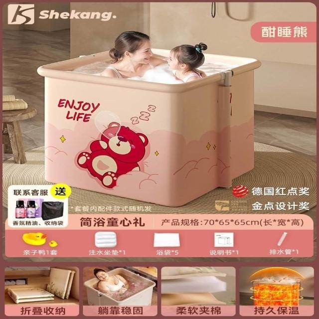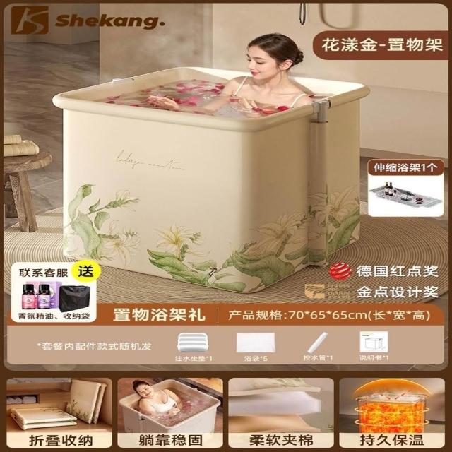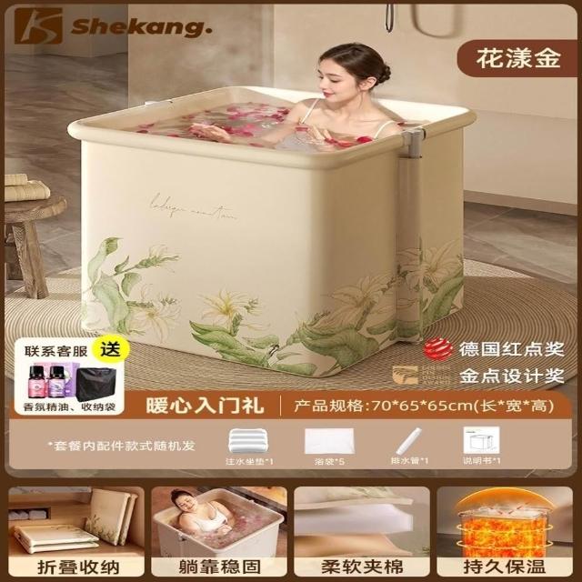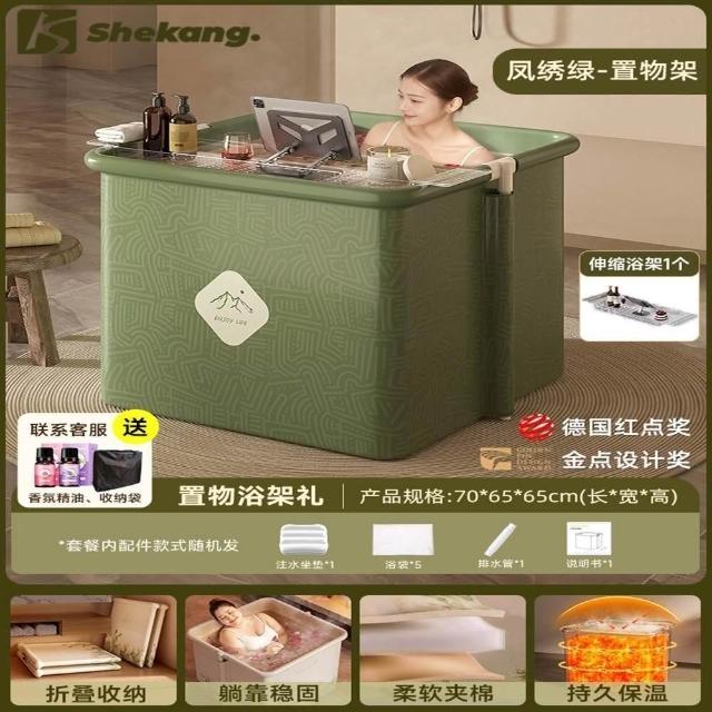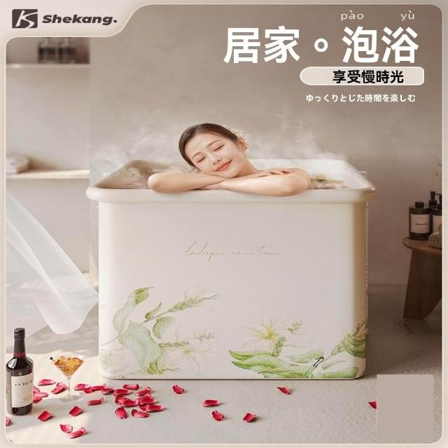 赫朗 方形折疊泡澡桶 沐浴桶 泡澡浴缸 折疊浴缸 速開浴桶 澡盆 躺靠穩定(雙排水口/持久保溫/大容量雙人用)