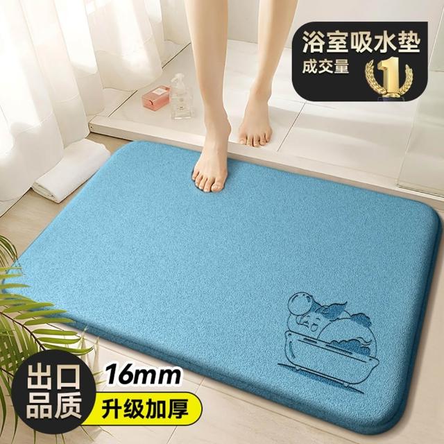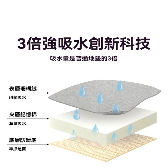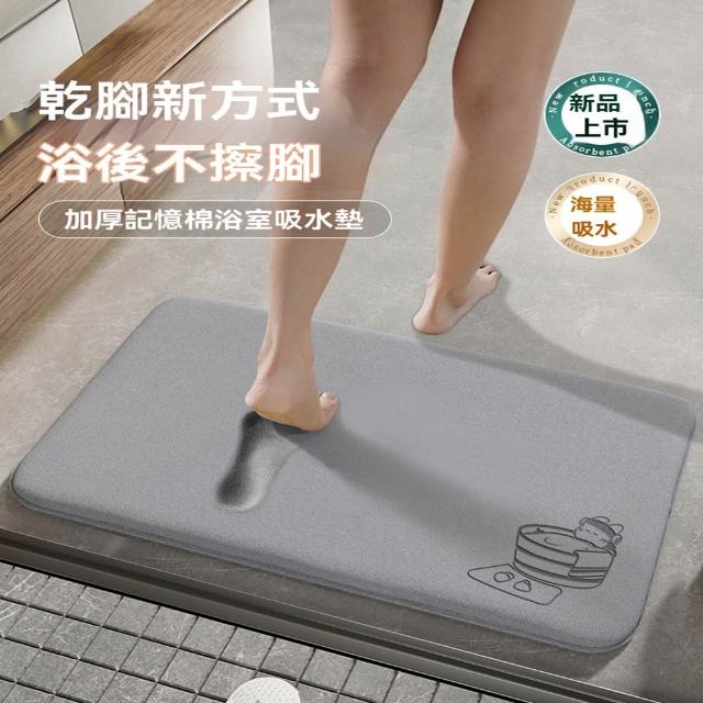 赫朗 浴室吸水軟墊 吸水墊 腳墊 防滑墊 浴室踏墊 快速吸水 厚實回彈(16mm加厚記憶棉/可機洗吸塵/雙面防滑)