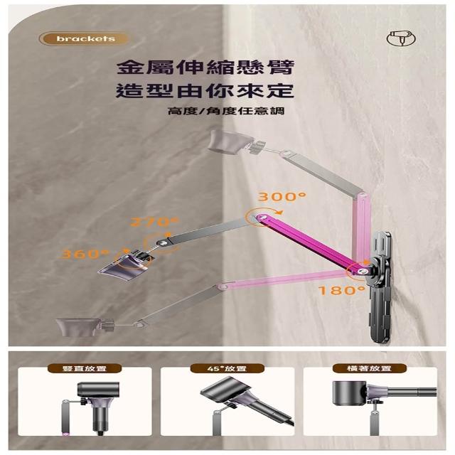 赫朗 伸縮吹風機懶人支架 免持式吹風機 吹風機固定器 懶人吹風機架 釋放雙手 告別手酸(金屬伸縮懸臂/多角度懸臂/可變形底座)