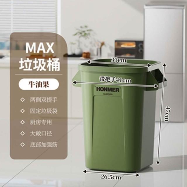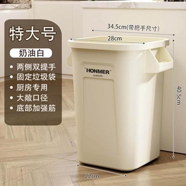 赫朗 加高大容量垃圾桶 廚房專用垃圾桶 加厚材質 底部加強筋 特大號垃圾桶(40-57cm高/兩側帶提手/大口徑定蓋)