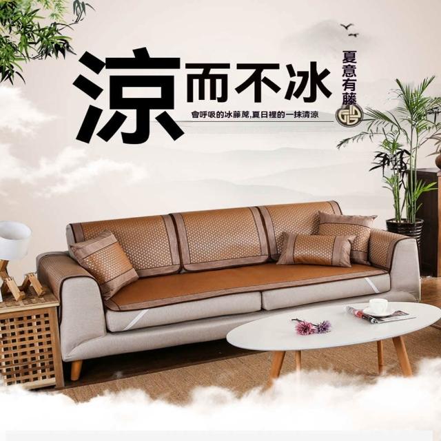 赫朗 竹藤沙發墊 冰藤沙發墊 沙發墊 涼感冰絲沙發墊 雙人座 三人座沙發墊 涼而不冰(冰絲加藤/3D立體加厚/抗皺)