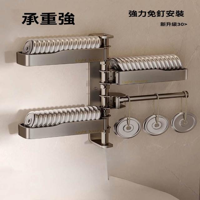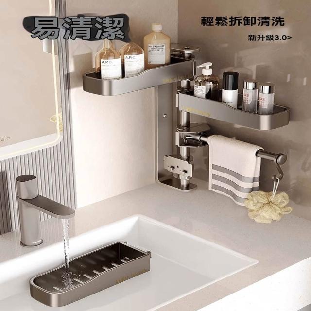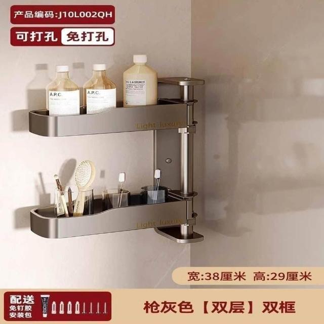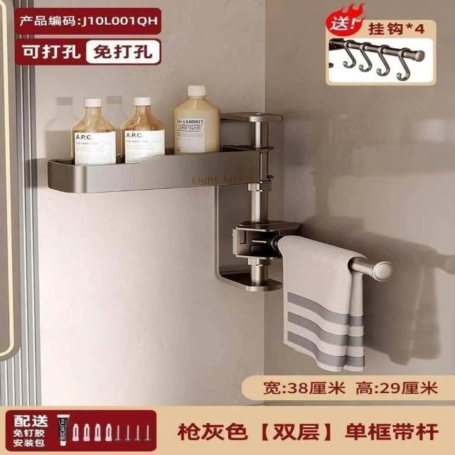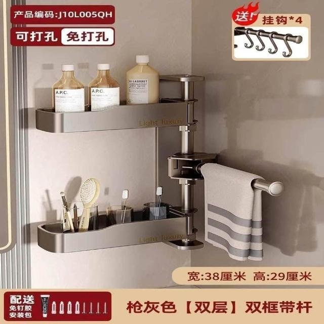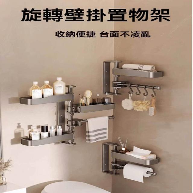 赫朗 旋轉壁掛置物架 浴室置物架 毛巾架 浴室收納架 壁掛架 太空鋁材質 可拆卸(免打孔/層高可調/180°旋轉)