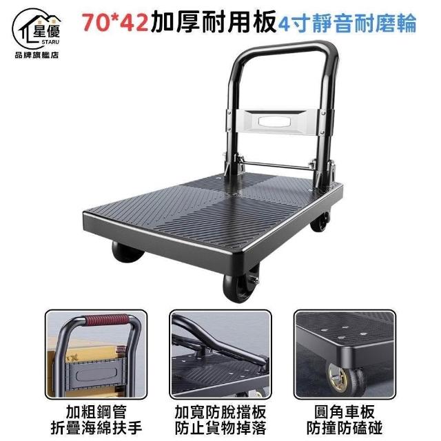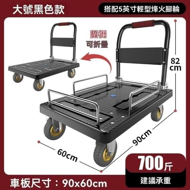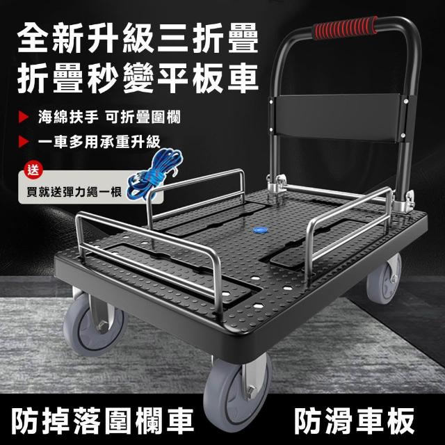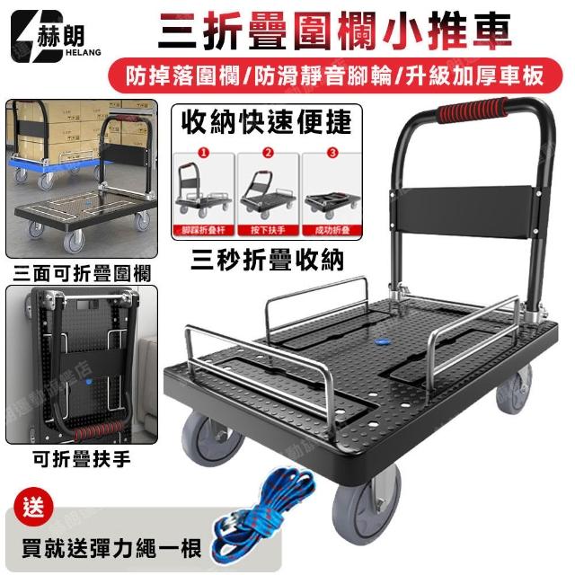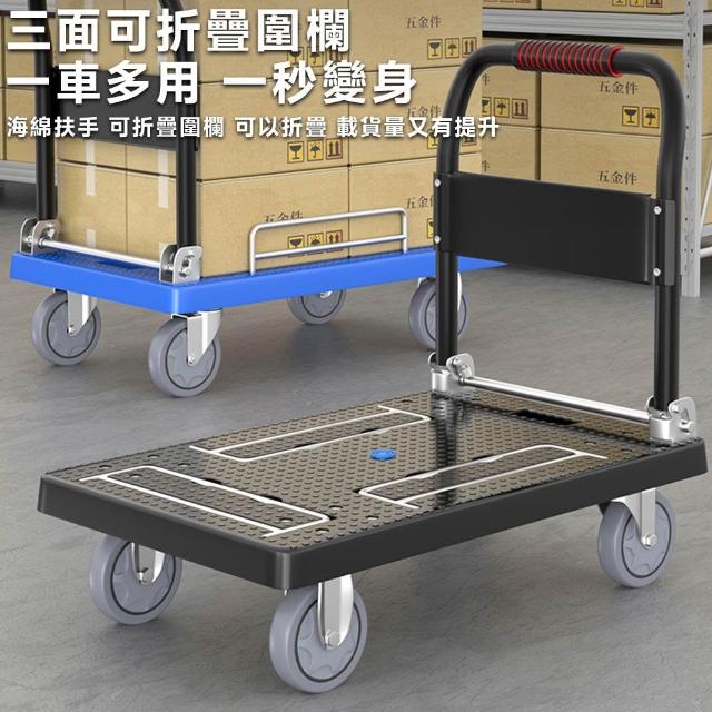 赫朗 台灣現貨 折疊手推車 小推車 行李推車 搬家車 購物車 平板推車(三圍欄/TPR靜音橡膠輪/承重800斤)
