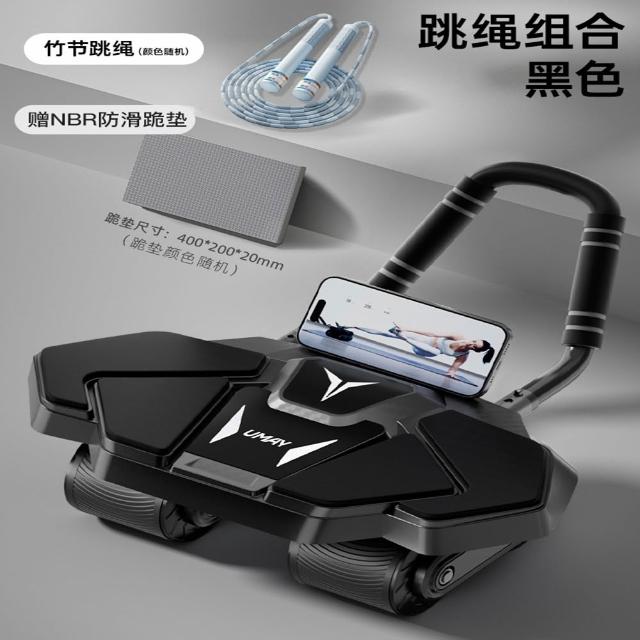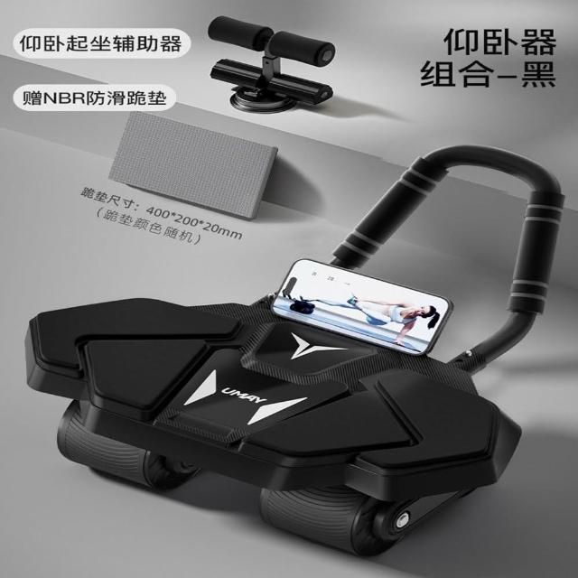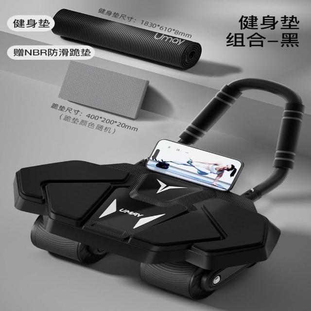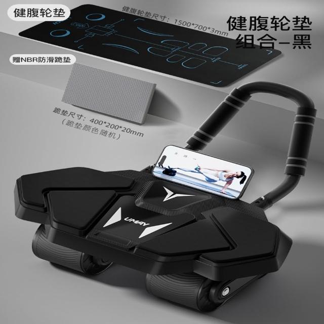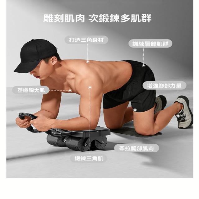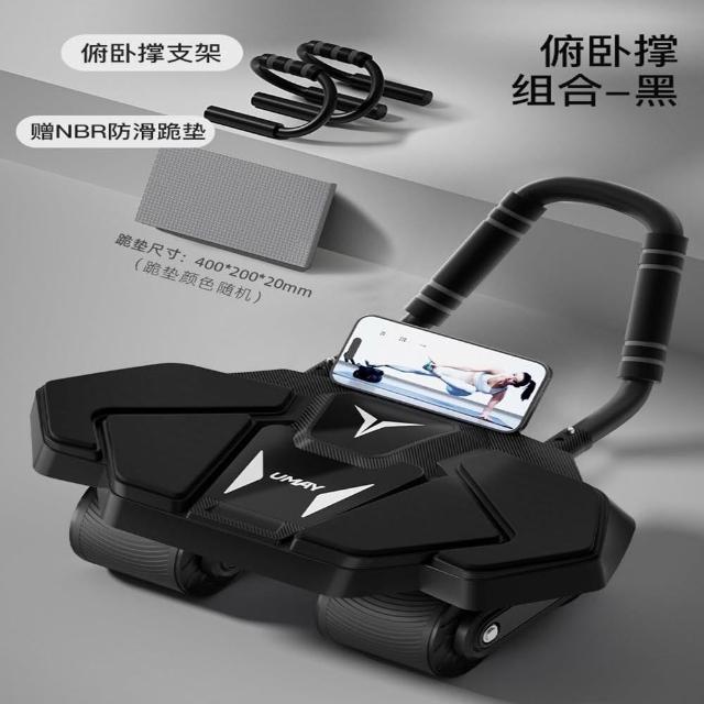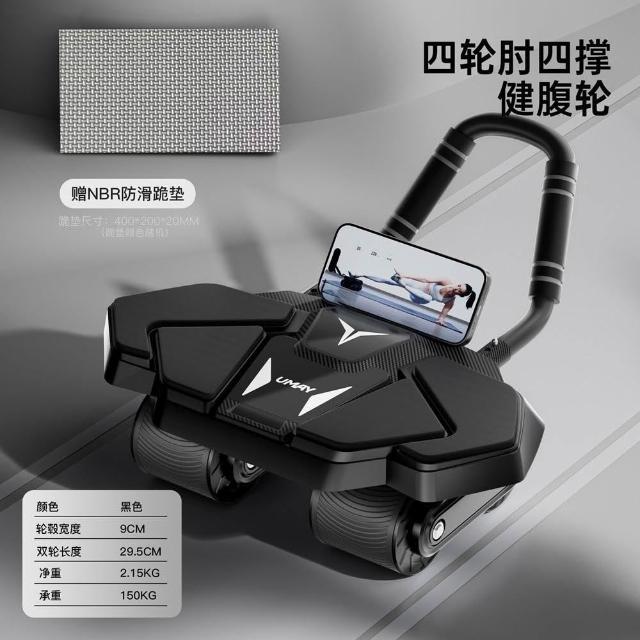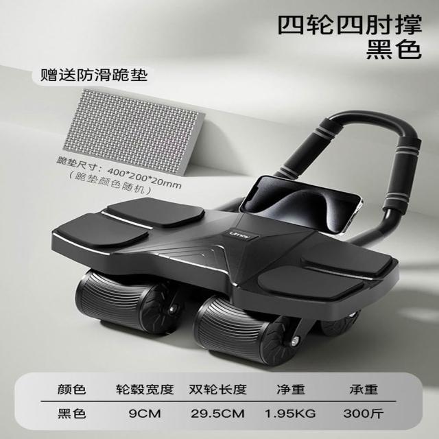 赫朗 自動回彈四輪健腹輪 健腹器 健身 腹肌馬甲線訓練 男女通用 附贈跪墊(300斤承重/可調節扶手/雙倍回彈)