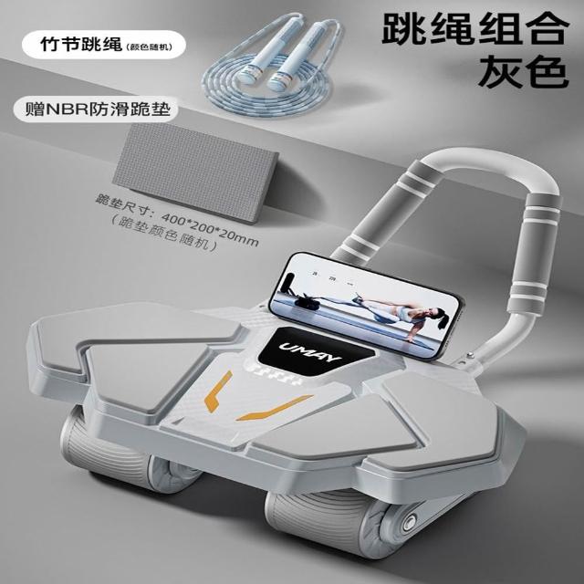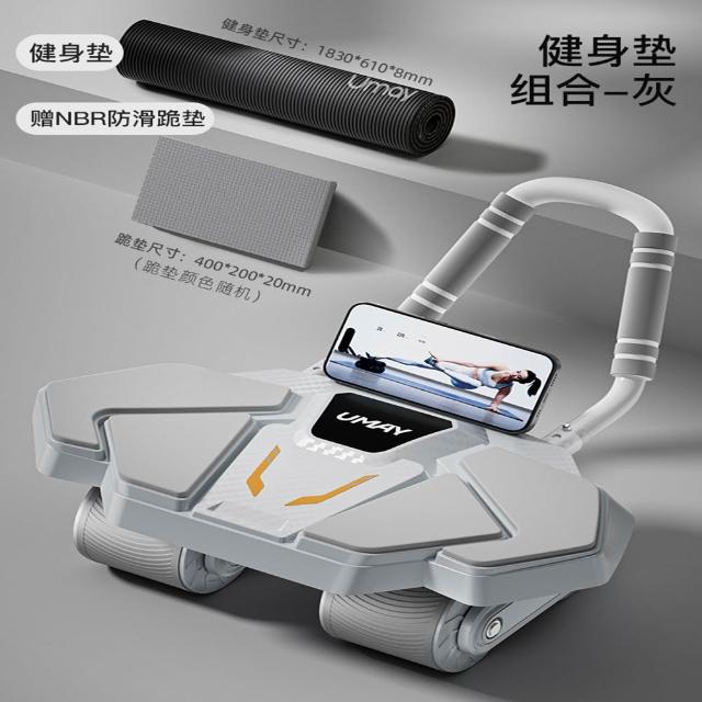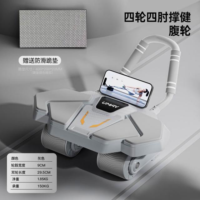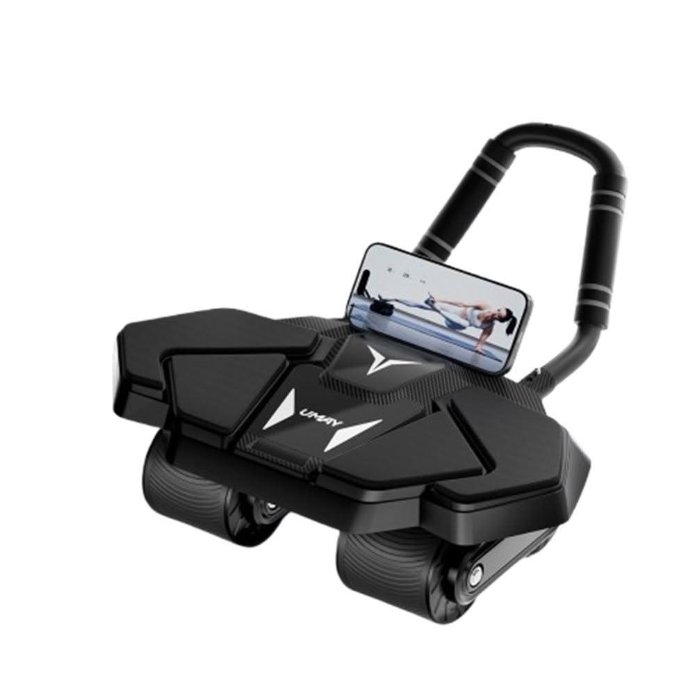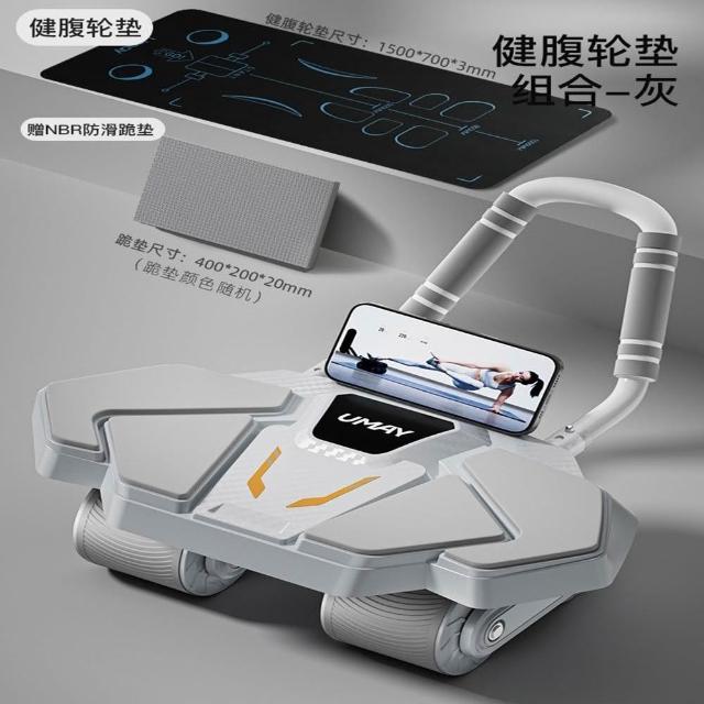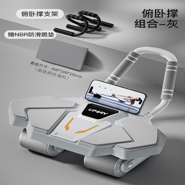 赫朗 自動回彈四輪健腹輪 健腹器 健身 腹肌馬甲線訓練 男女通用 附贈跪墊(300斤承重/可調節扶手/雙倍回彈)