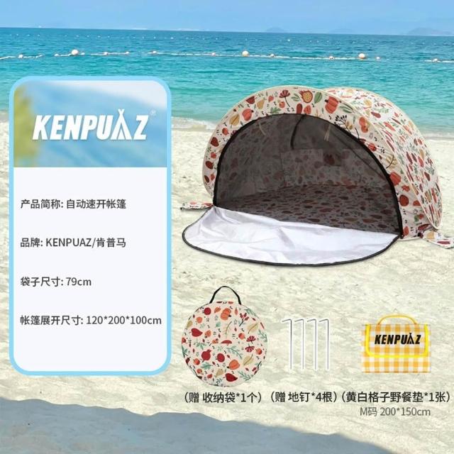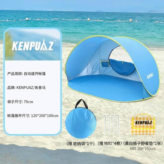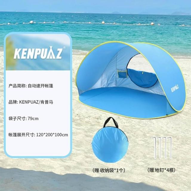 赫朗 自動速開帳篷 免搭建帳篷 戶外帳篷 沙灘帳篷 3-4人用 家庭露營必備 一開即用(升級大空間/防曬遮光/前後通風)