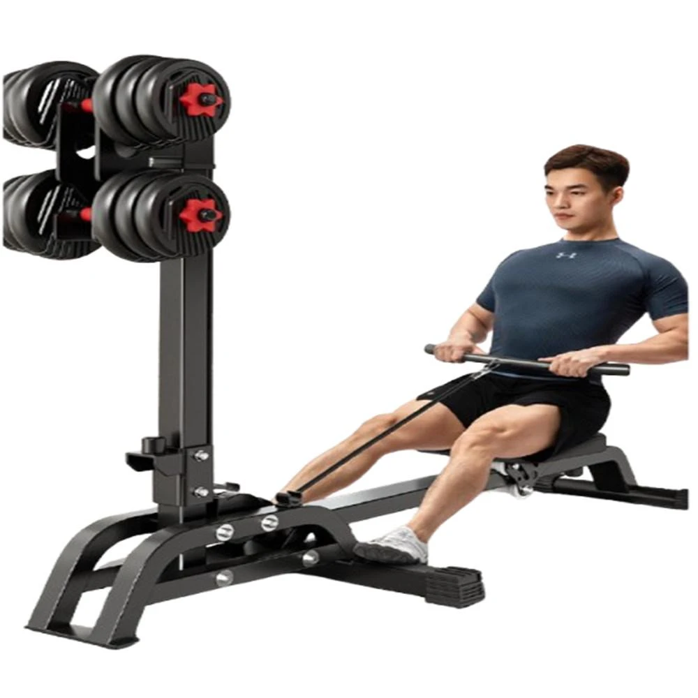 赫朗 啞鈴劃船機 家用劃船機 室內健身器材 折疊收納 男女通用 專業力量訓練(高位下拉/滾動滑輪/20kg啞鈴)