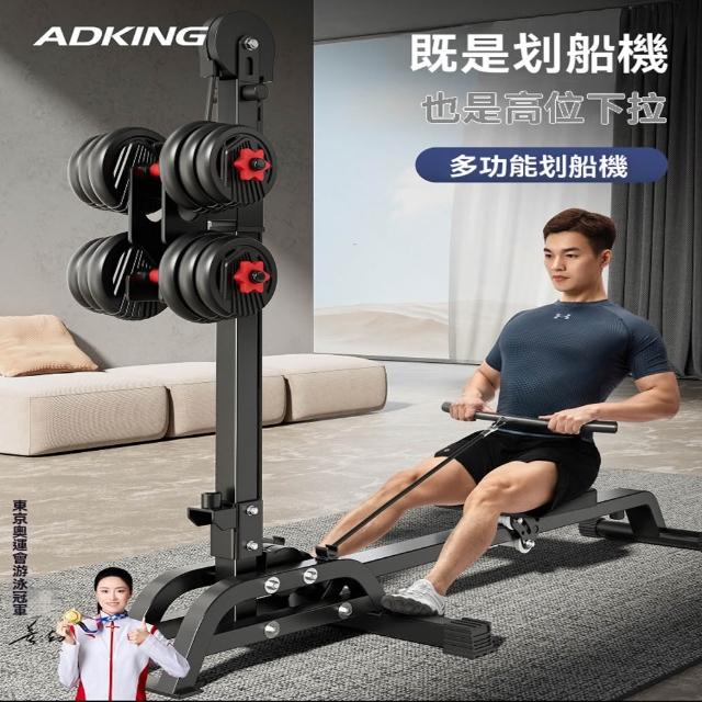 赫朗 啞鈴劃船機 家用劃船機 室內健身器材 折疊收納 男女通用 專業力量訓練(高位下拉/滾動滑輪/20kg啞鈴)