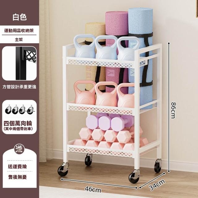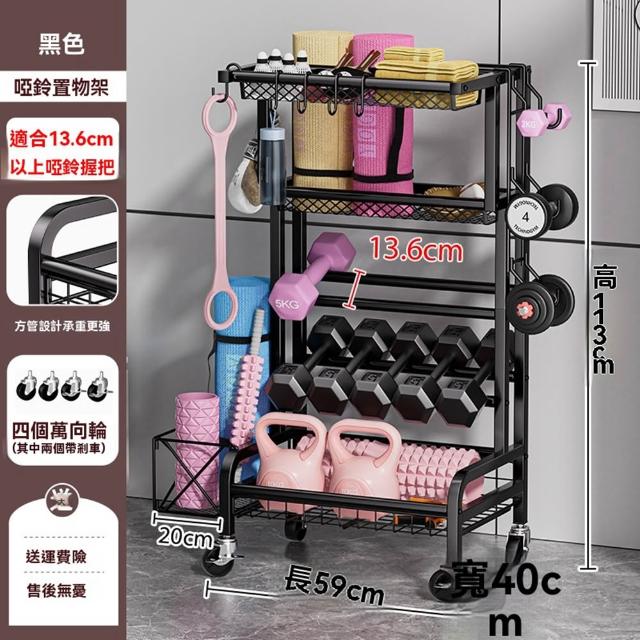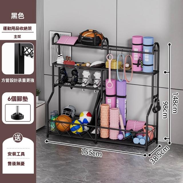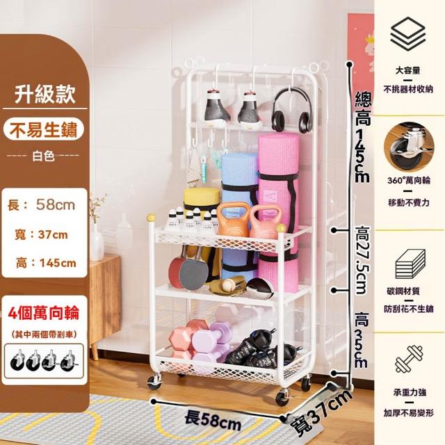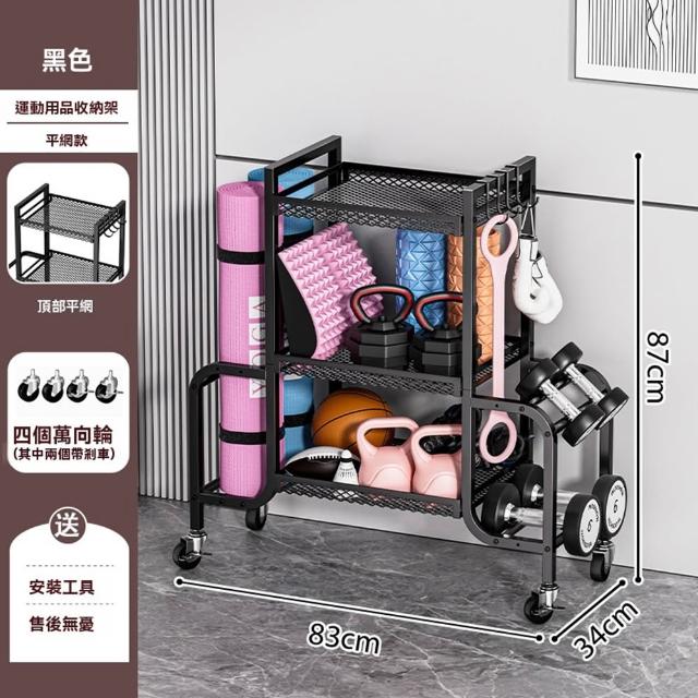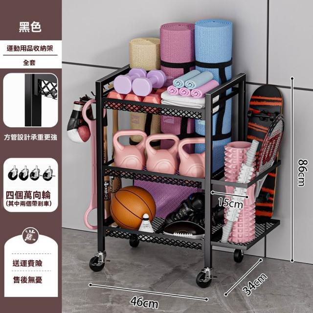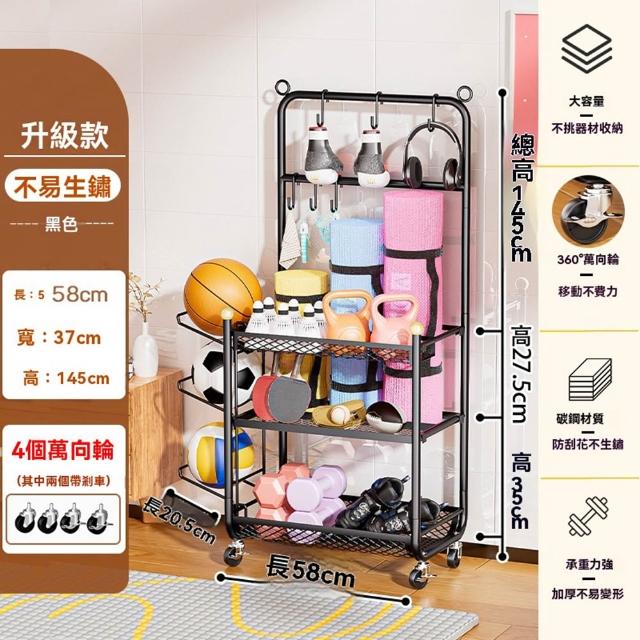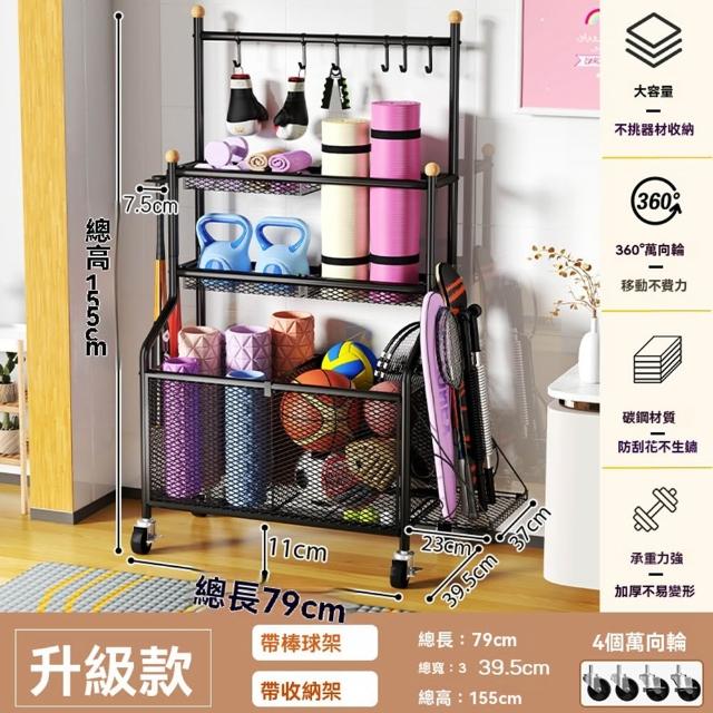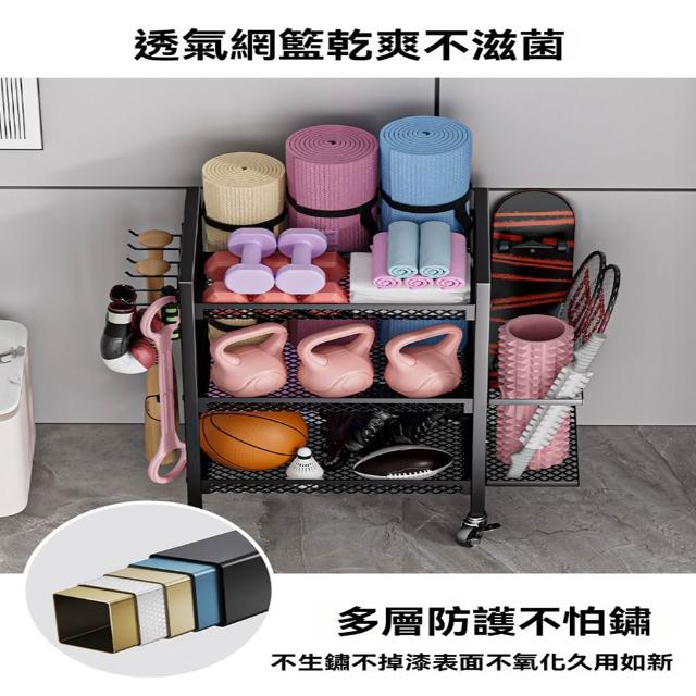 赫朗 運動器材收納架 健身房置物架 收納框 籃球收納筐 健身用品置物架(萬向輪自由移動/分區收納/承重100kg)