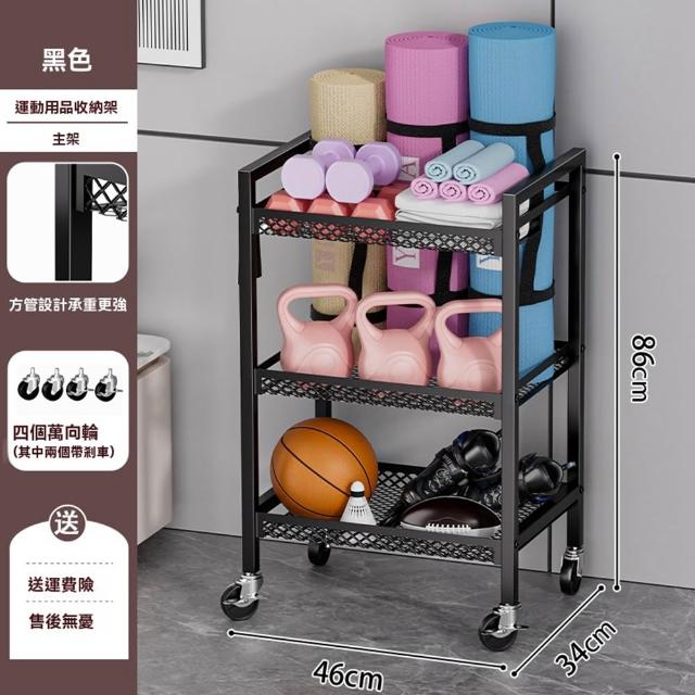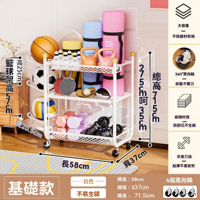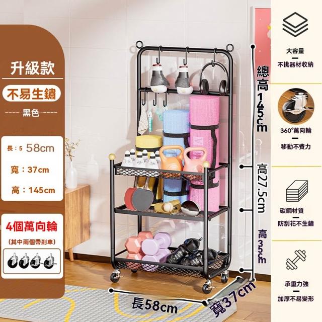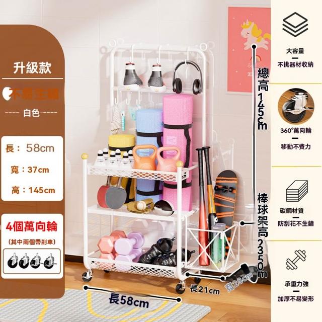 赫朗 運動器材收納架 健身房置物架 收納框 籃球收納筐 健身用品置物架(萬向輪自由移動/分區收納/承重100kg)