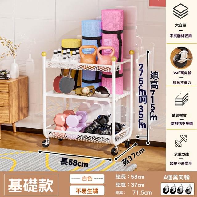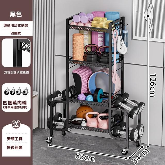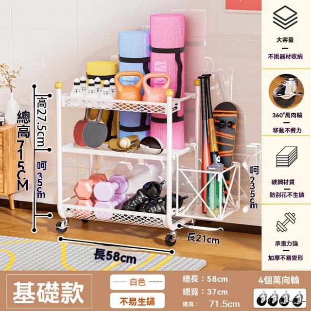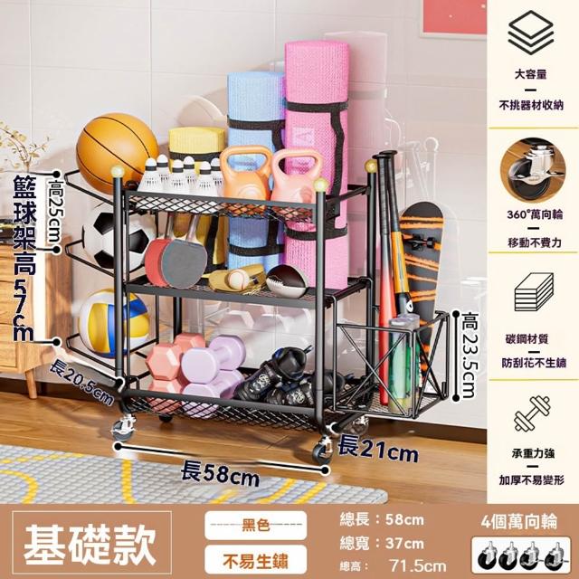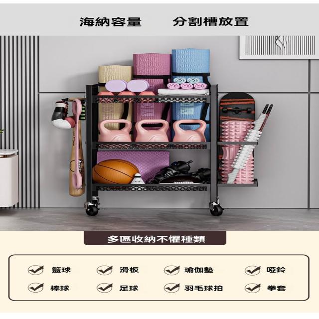 赫朗 運動器材收納架 健身房置物架 收納框 籃球收納筐 健身用品置物架(萬向輪自由移動/分區收納/承重100kg)