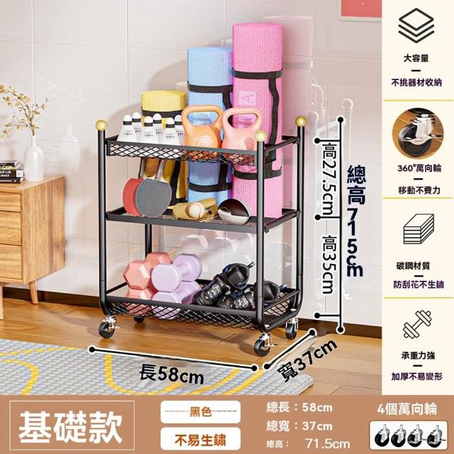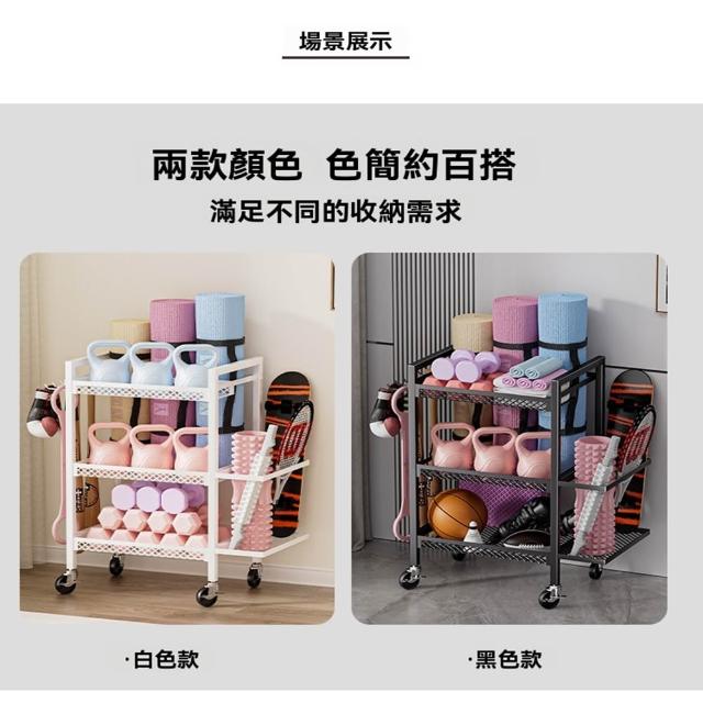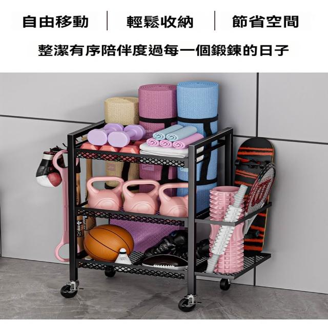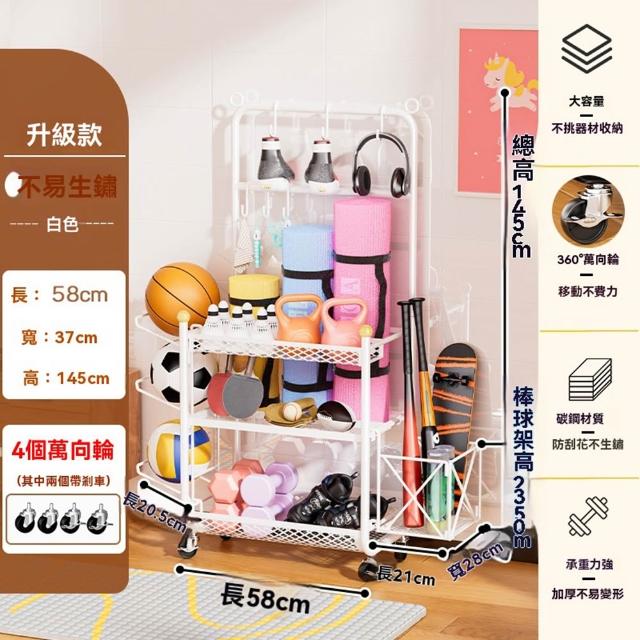 赫朗 運動器材收納架 健身房置物架 收納框 籃球收納筐 健身用品置物架(萬向輪自由移動/分區收納/承重100kg)