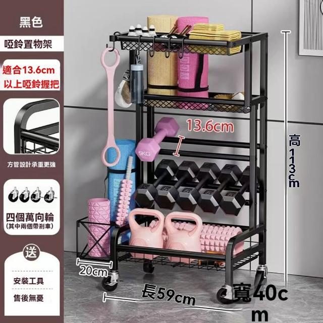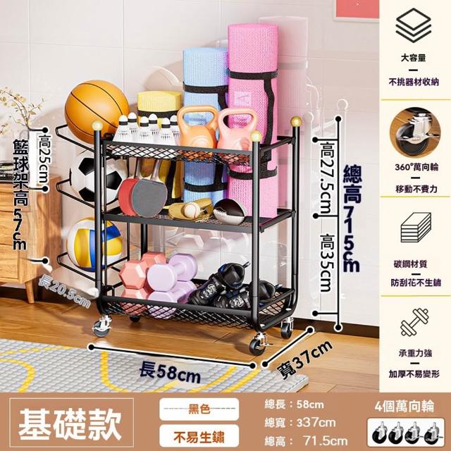 赫朗 運動器材收納架 健身房置物架 收納框 籃球收納筐 健身用品置物架(萬向輪自由移動/分區收納/承重100kg)