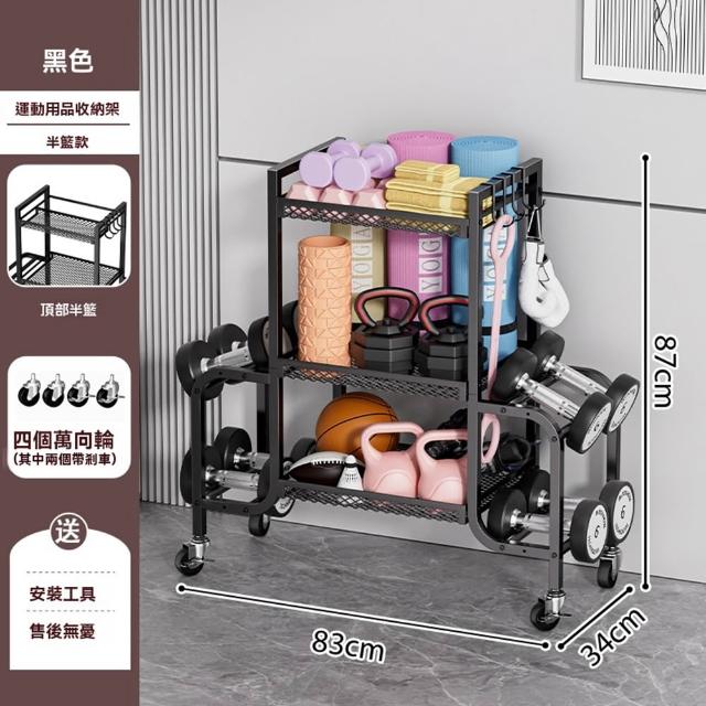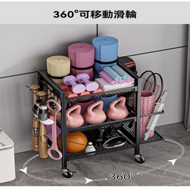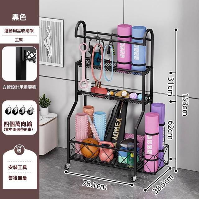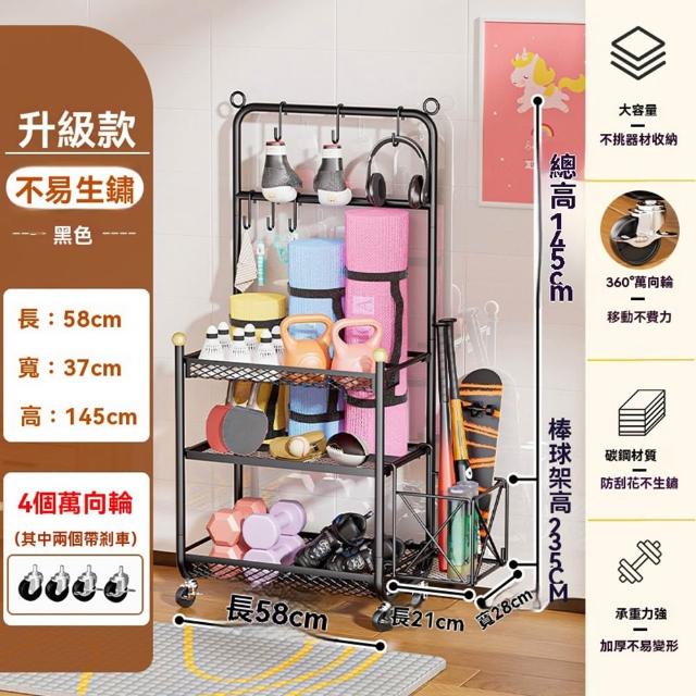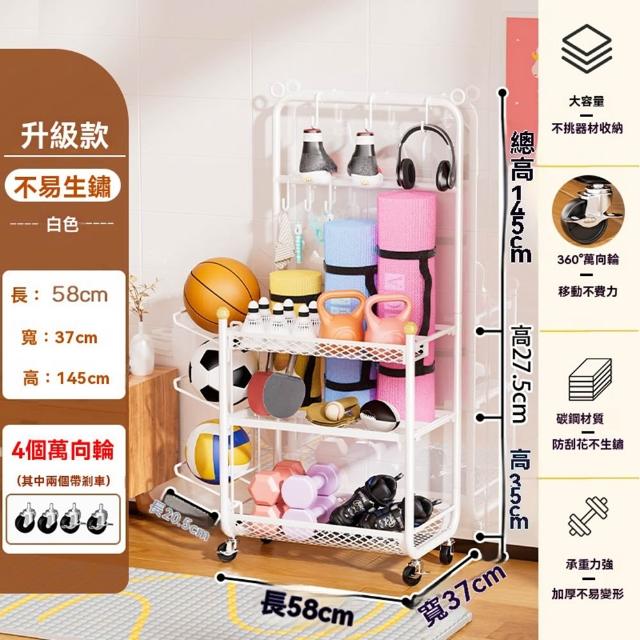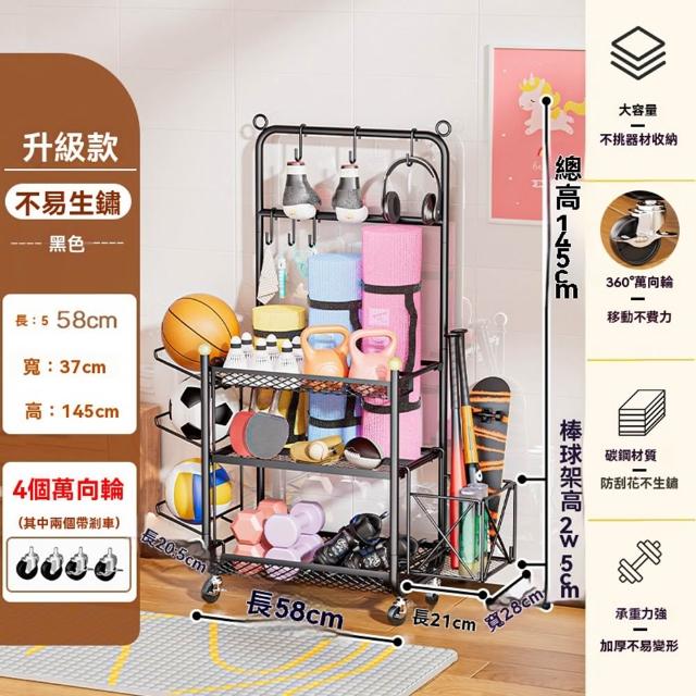 赫朗 運動器材收納架 健身房置物架 收納框 籃球收納筐 健身用品置物架(萬向輪自由移動/分區收納/承重100kg)
