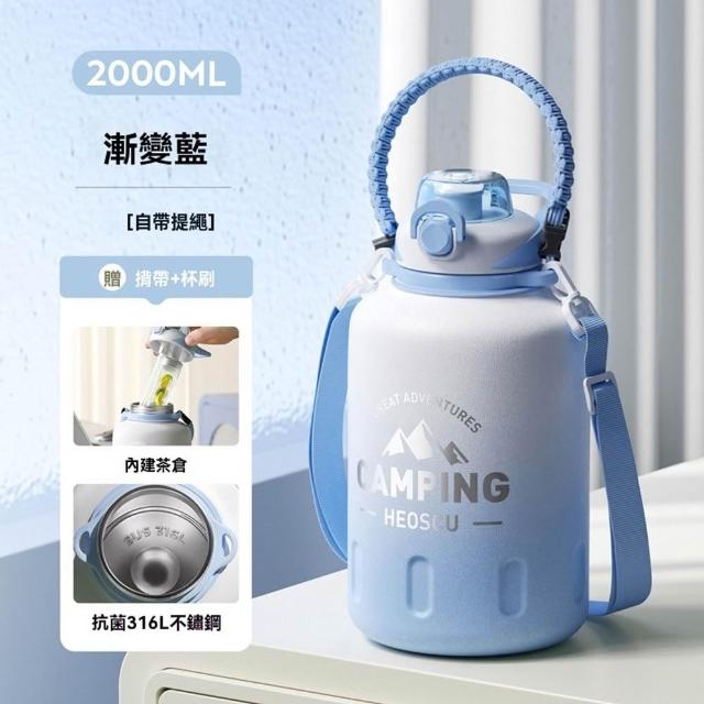 赫朗 保溫水壺 保溫杯 水壺 保冰桶 保冷壺 隨行杯 2000ml大容量(抗菌316L/獨立茶倉/48H保溫保冷)