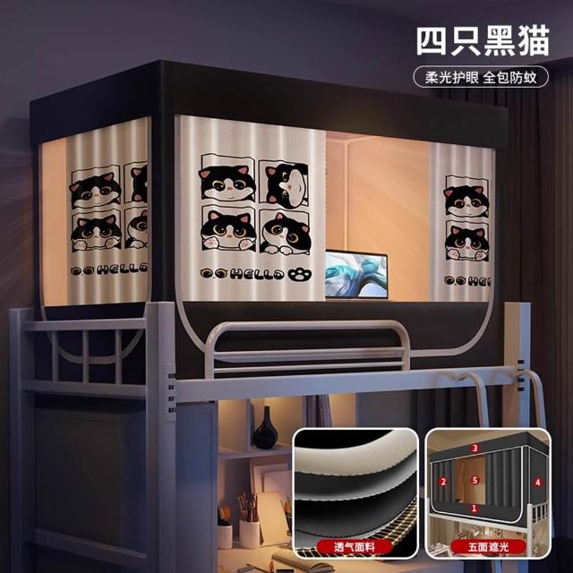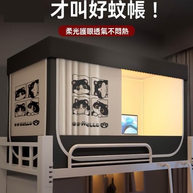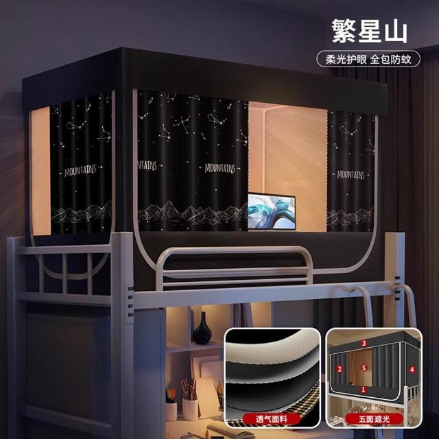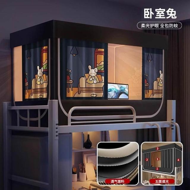 赫朗 學生蚊帳 宿舍蚊帳 上下鋪床簾 免安裝蚊帳 懶人免拼 帶防塵頂(五面遮光/寬高可調節/升級黑膠材質)