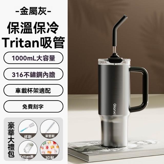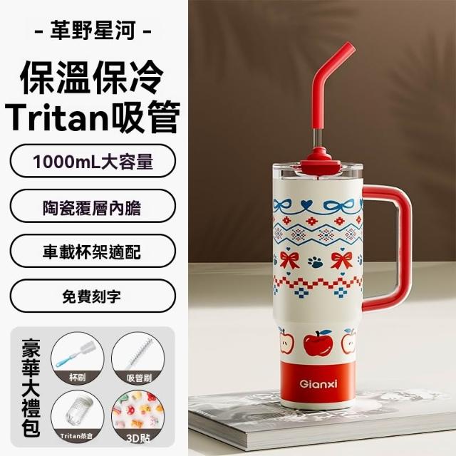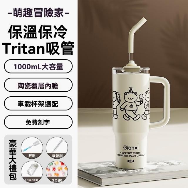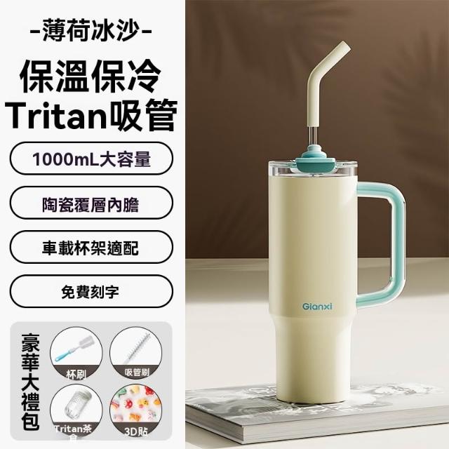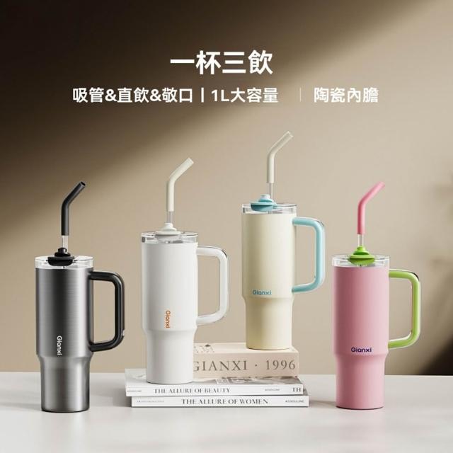 赫朗 巨無霸水杯 冰霸杯 保溫杯 陶瓷保溫杯 隨行杯 夏日解暑必備 可刻字(1L大容量/陶瓷內膽/12H長效保溫保冷)