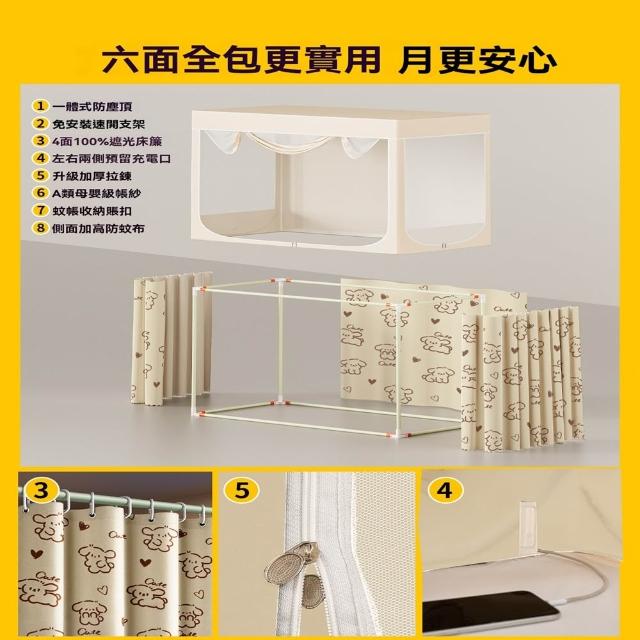 (赫朗)床帘 蚊帳 100%遮光帘 一體式 免安裝(A類母嬰級帳紗/全包寢室/碳素鋼支架/上鋪/下鋪)