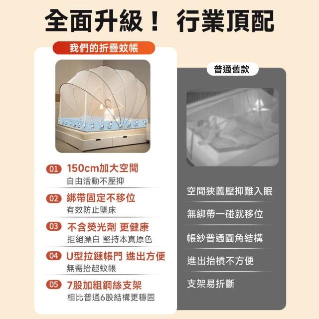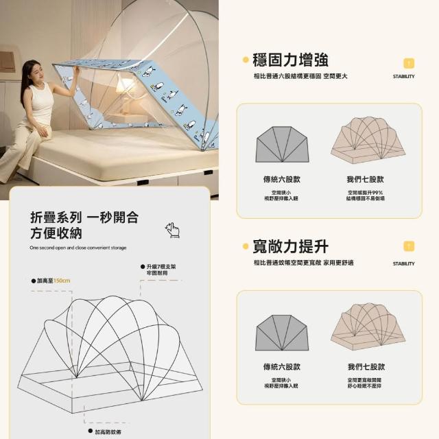 赫朗 台灣現貨 折疊蚊帳 免組裝 蚊帳 雙人蚊帳 蒙古包蚊帳 防蚊蚊帳(升級7股鋼鐵骨架/可折疊一秒開合)