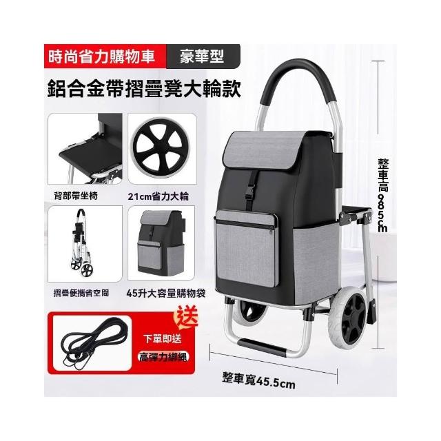赫朗 帶座椅買菜車 購物車 老人買菜車 可推可坐可爬樓 拉桿車 贈綁繩(45L大容量/鋁合金車架/扶手三檔調節)