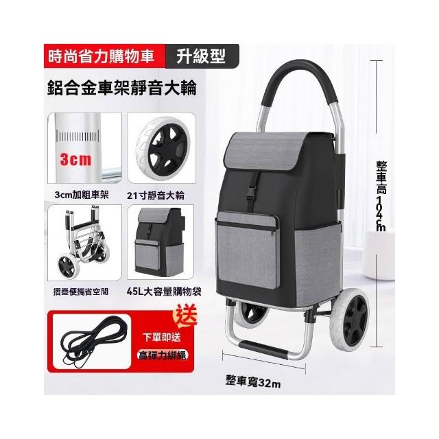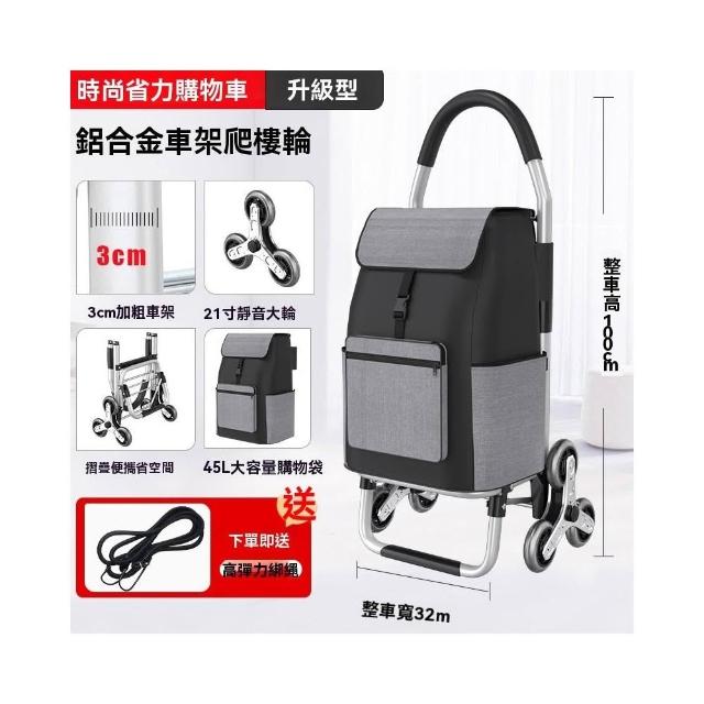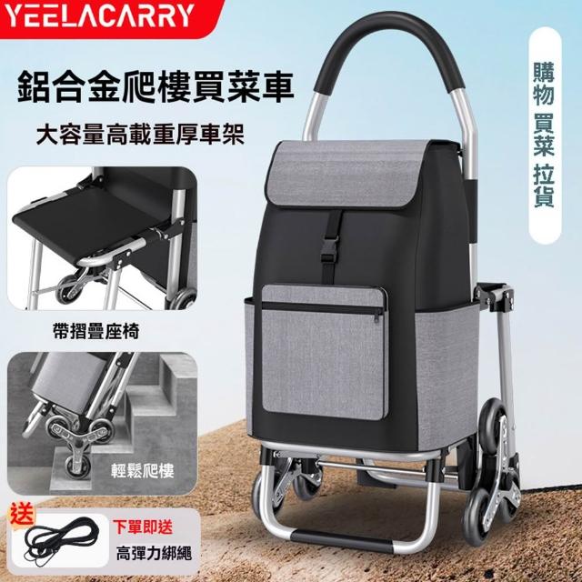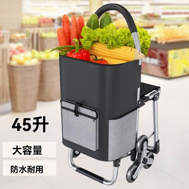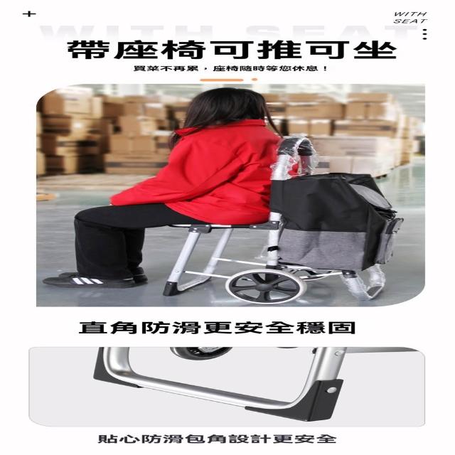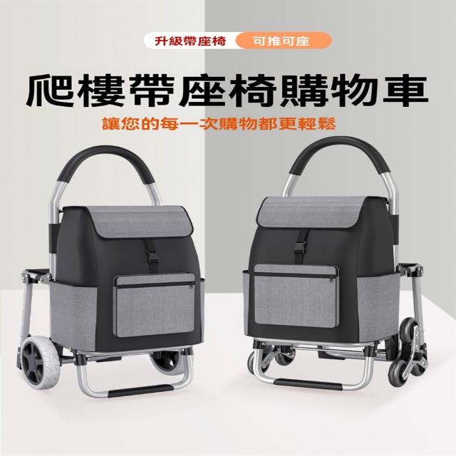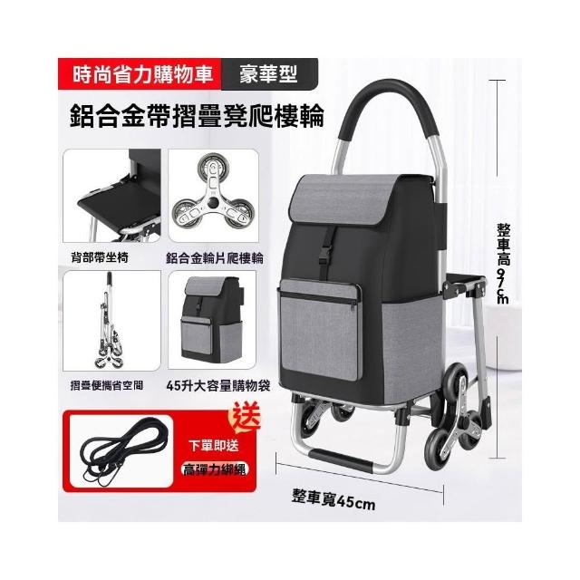 赫朗 帶座椅買菜車 購物車 老人買菜車 可推可坐可爬樓 拉桿車 贈綁繩(45L大容量/鋁合金車架/扶手三檔調節)