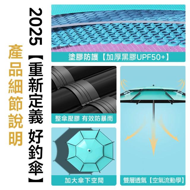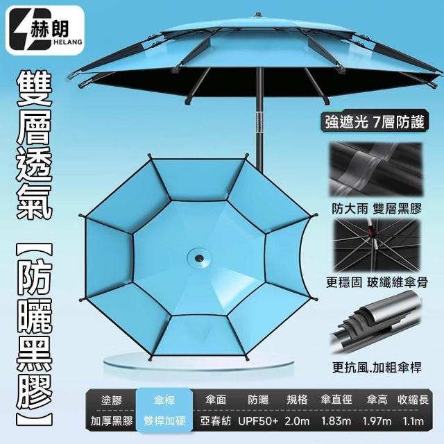 赫朗 台灣現貨 釣魚傘 遮陽傘 垂釣傘 折疊釣魚傘 防曬釣魚傘 強韌抗風骨架(雙層透氣/防曬黑膠/玻纖維傘骨)