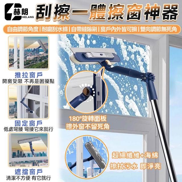 赫朗 刮擦一體擦窗器 擦玻璃神器 高層窗外清潔 玻璃清潔 帶刮水條 雙面可擦(自由調節角度/可拆卸海綿/自帶縫隙刷)