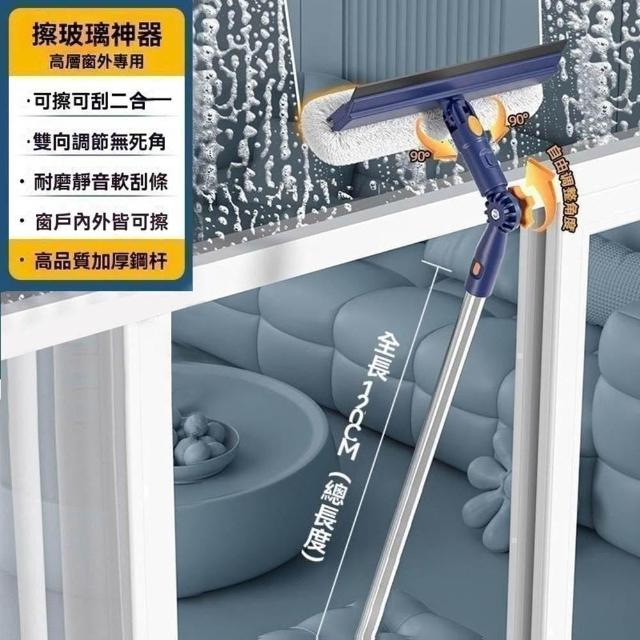 赫朗 刮擦一體擦窗器 擦玻璃神器 高層窗外清潔 玻璃清潔 帶刮水條 雙面可擦(自由調節角度/可拆卸海綿/自帶縫隙刷)