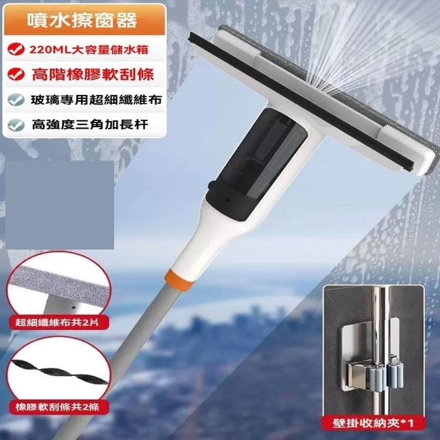 赫朗 噴水擦窗器 懶人擦窗神器 家用窗戶清潔器 清潔刮水器 邊噴邊擦 玻璃專用布(一鍵噴水/刮擦一體/220ML儲水箱)