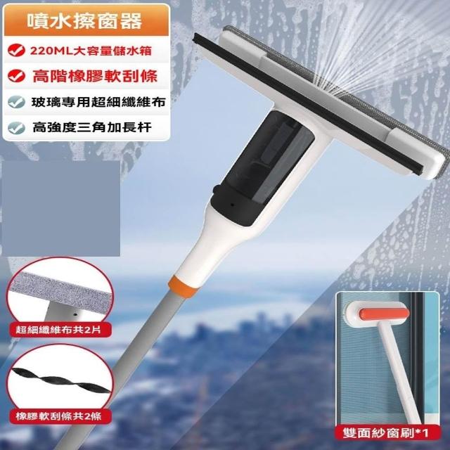 赫朗 噴水擦窗器 懶人擦窗神器 家用窗戶清潔器 清潔刮水器 邊噴邊擦 玻璃專用布(一鍵噴水/刮擦一體/220ML儲水箱)