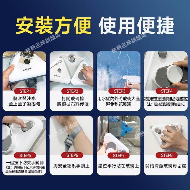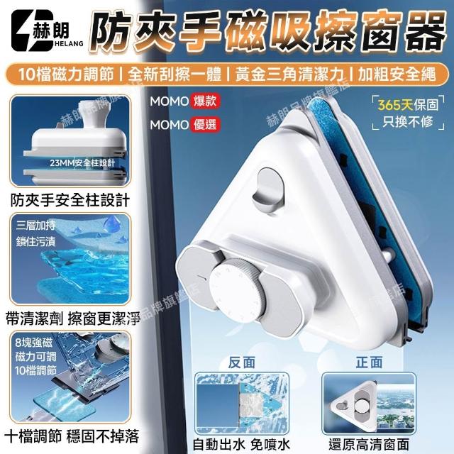 赫朗 手持擦窗神器 磁吸擦窗器 玻璃擦 懶人擦窗 高層擦窗用 刮擦一體 自帶清潔劑(防夾手/10檔調磁/加粗安全繩)