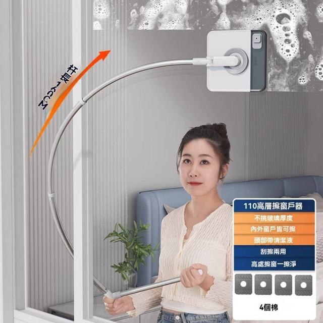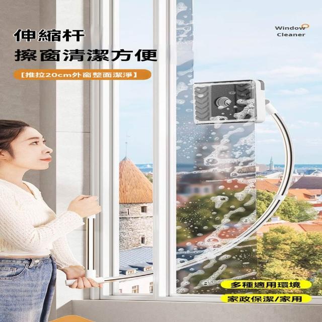 赫朗 伸縮擦窗神器 玻璃擦 窗戶清潔 刮水器 安全性高 內窗外窗皆可擦(推拉20cm/刮洗一體/360度靈活拐彎)
